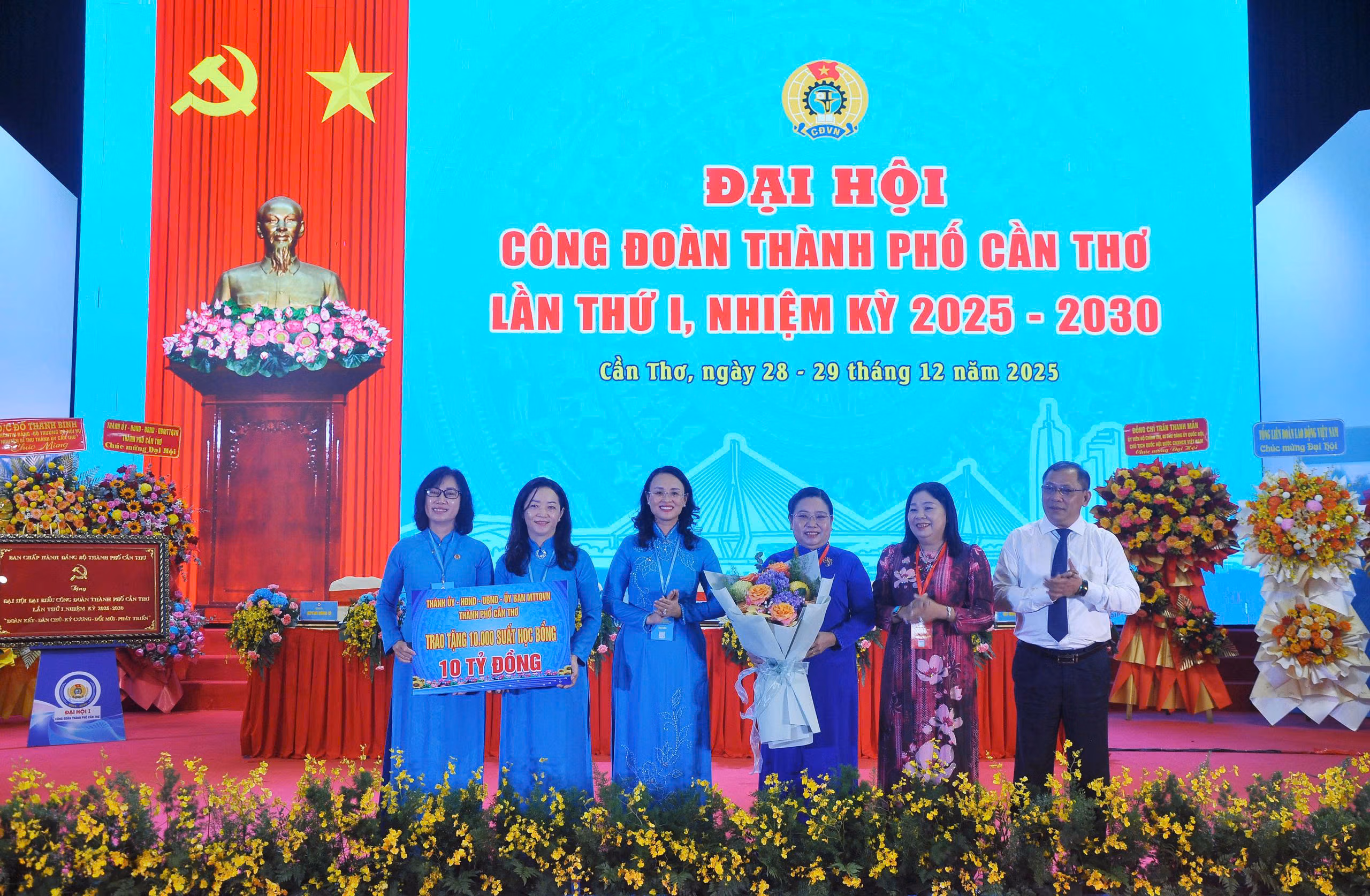 Dịp này, Thành ủy, HĐND, UBND, Ủy ban MTTQ Việt Nam thành phố tặng đoàn viên Công đoàn TP Cần Thơ 10.000 suất học bổng trị giá 10 tỷ đồng.