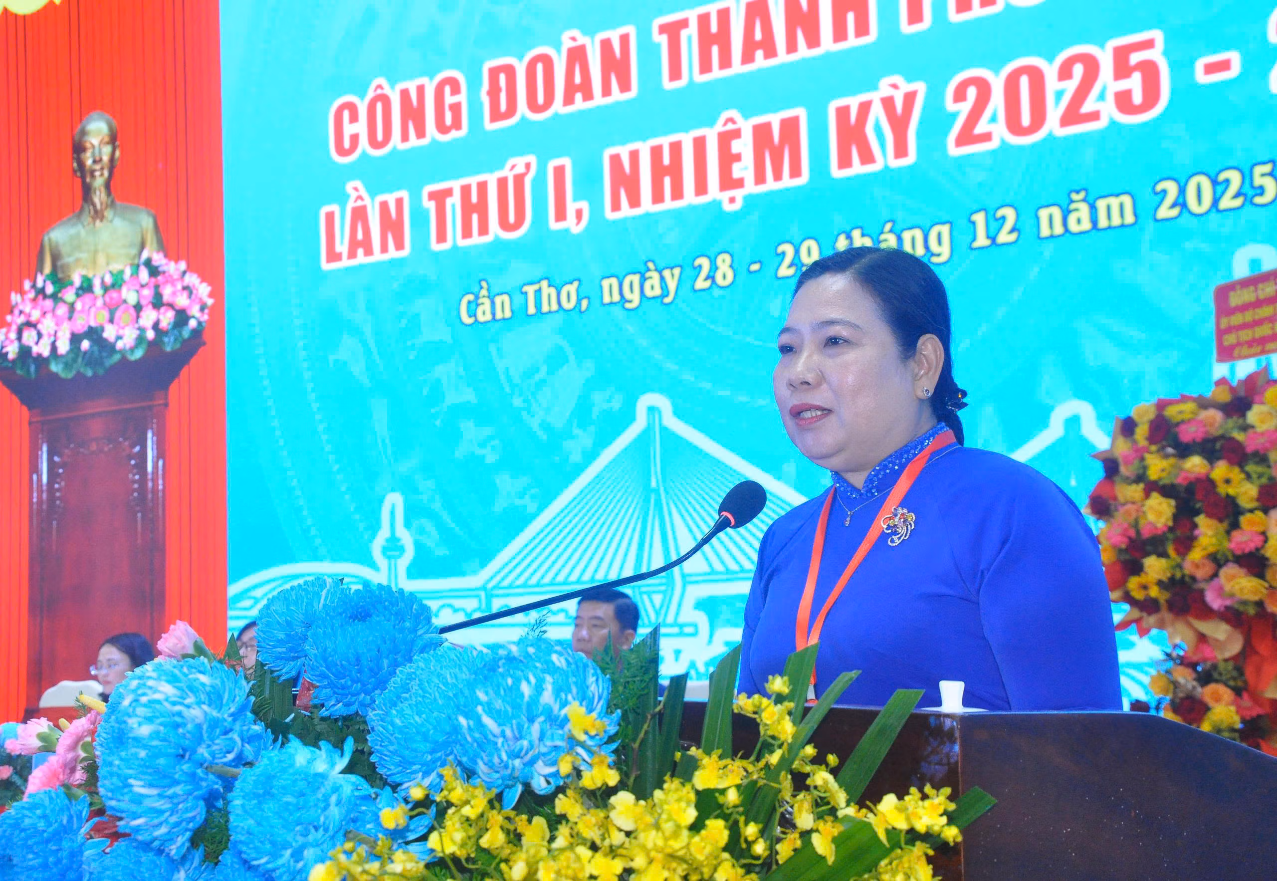 Phát biểu chỉ đạo tại đại hội, Phó Bí Thư Thành uỷ, Chủ tịch Uỷ ban MTTQ Việt Nam TP Cần Thơ Hồ Thị Cẩm Đào đề nghị các cấp Công đoàn thành phố xác định rõ chức năng đại diện, chăm lo, bảo vệ quyền và lợi ích hợp pháp, chính đáng của người lao động là nhiệm vụ trọng tâm xuyên suốt,…; tiếp tục đổi mới mạnh mẽ nội dung, phương thức hoạt động Công đoàn, lấy đoàn viên, người lao động làm trung tâm; đẩy mạnh ứng dụng công nghệ số, xây dựng các kênh tương tác hiệu quả, linh hoạt, kịp thời; chú trọng xây dựng tổ chức Công đoàn vững mạnh, phát triển đoàn viên, nhất là trong khu công nghiệp, khu chế xuất, doanh nghiệp FDI, khu vực lao động phi chính thức; quan tâm đào tạo, bồi dưỡng đội ngũ cán bộ Công đoàn bản lĩnh, tâm huyết, chuyên nghiệp; phấn đấu hoàn thành chỉ tiêu kết nạp ít nhất 80.000 đoàn viên mới trong nhiệm kỳ; đổi mới và nâng cao chất lượng các phong trào thi đua yêu nước, gắn với nâng cao năng suất lao động, cải tiến kỹ thuật, tăng sức cạnh tranh của doanh nghiệp; phát huy vai trò của Công đoàn trong xây dựng văn hóa doanh nghiệp, văn hóa công sở, vận động đoàn viên chấp hành pháp luật, giữ gìn kỷ cương, trật tự đô thị; xây dựng đội ngũ công nhân hiện đại, có tay nghề, kỷ luật, trách nhiệm cao, đáp ứng yêu cầu phát triển trong giai đoạn mới,…