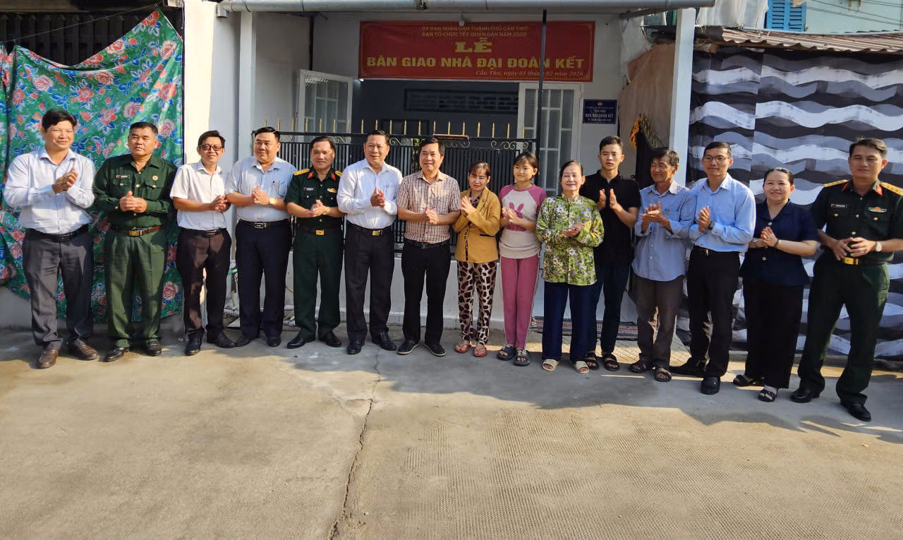 Ngày 1/2, nằm trong chuỗi hoạt động chào mừng Tết quân dân năm 2026, Ban Thường trực Ủy ban Mặt trận Tổ quốc (MTTQ) Việt Nam phường Cái Răng (TP Cần Thơ) tổ chức lễ bàn giao nhà Đại đoàn kết cho hộ gia đình bà Lê Thị Xuyến, cư ngụ tại khu vực Phú Quới, phường Cái Răng, TP Cần Thơ.