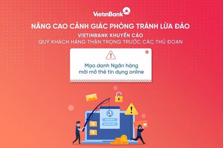 Thủ đoạn của các đối tượng lừa đảo luôn rất tinh vi và liên tục thay đổi, Quý khách hàng cần hết sức cảnh giác trước mọi thủ đoạn lừa đảo. Trường hợp có nghi ngờ hãy liên hệ trực tiếp với Chi nhánh, Phòng giao dịch VietinBank gần nhất hoặc hotline 1900 558 868.