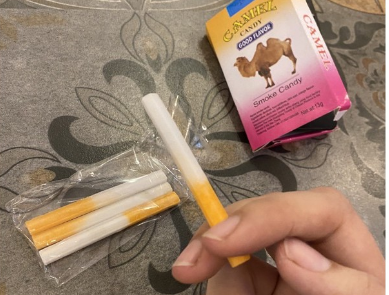 Điều đáng nói, kẹo thuốc lá vừa ăn vừa có thể nhả khói như khi hút thuốc, vị ngọt thơm nên được học sinh ưa thích.