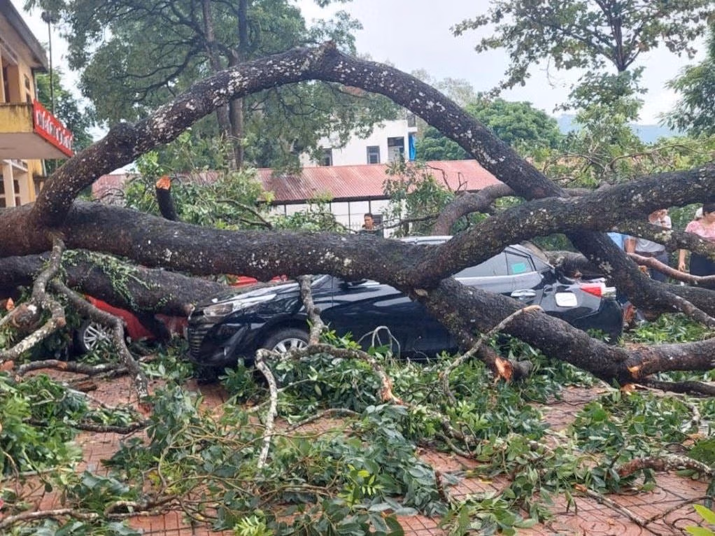Cành cây gãy đổ làm hư hỏng 4 ô tô, 1 người nhập viện