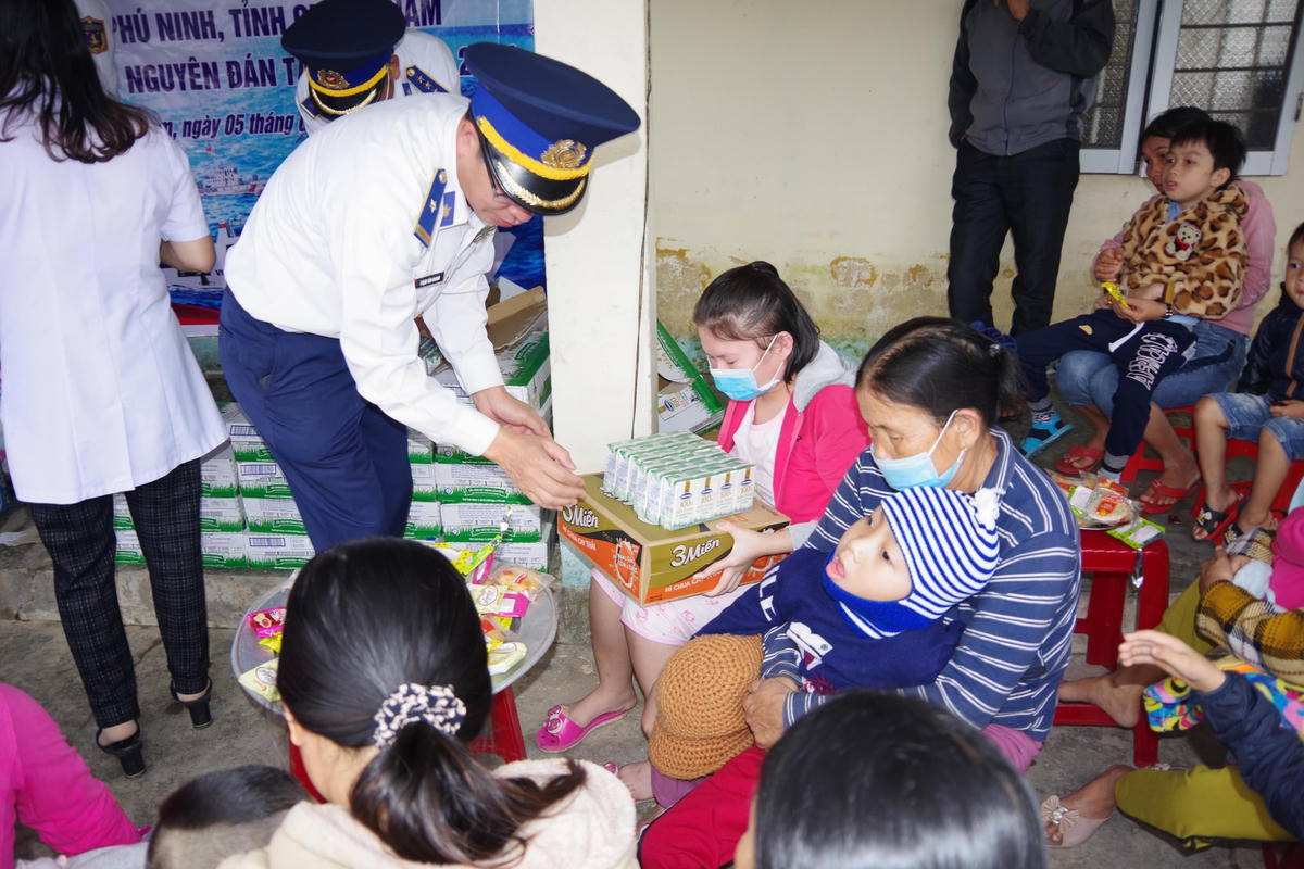 Hải đội 212 đã trao 60 sất quà cho các cháu khuyết tật trị giá mỗi suất 300.000 đồng và các hiện vật thiết yếu như bỉm, mì ăn liền, sữa,….