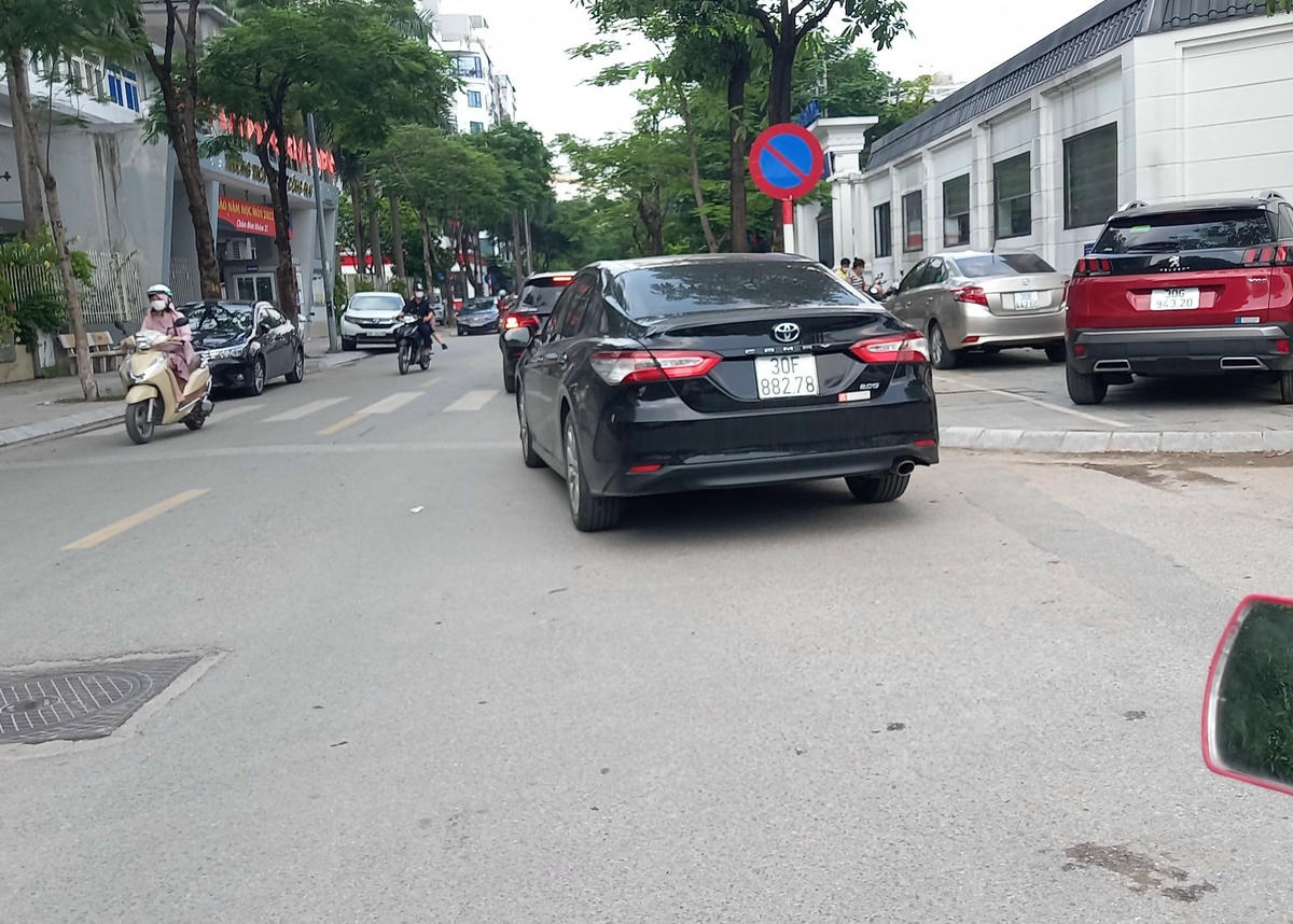 Cầu Giấy: Ô tô thỏa sức lấn chiếm lòng đường, vỉa hè dù có biển cấm đỗ
