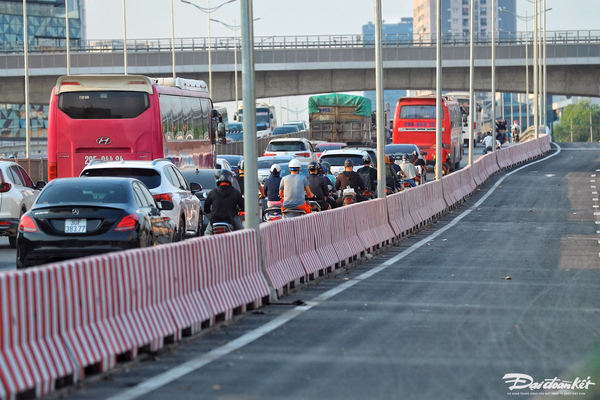 Cầu vượt thép Mai Dịch chưa thông xe, người dân vất vả di chuyển qua nút ‘thắt cổ chai’