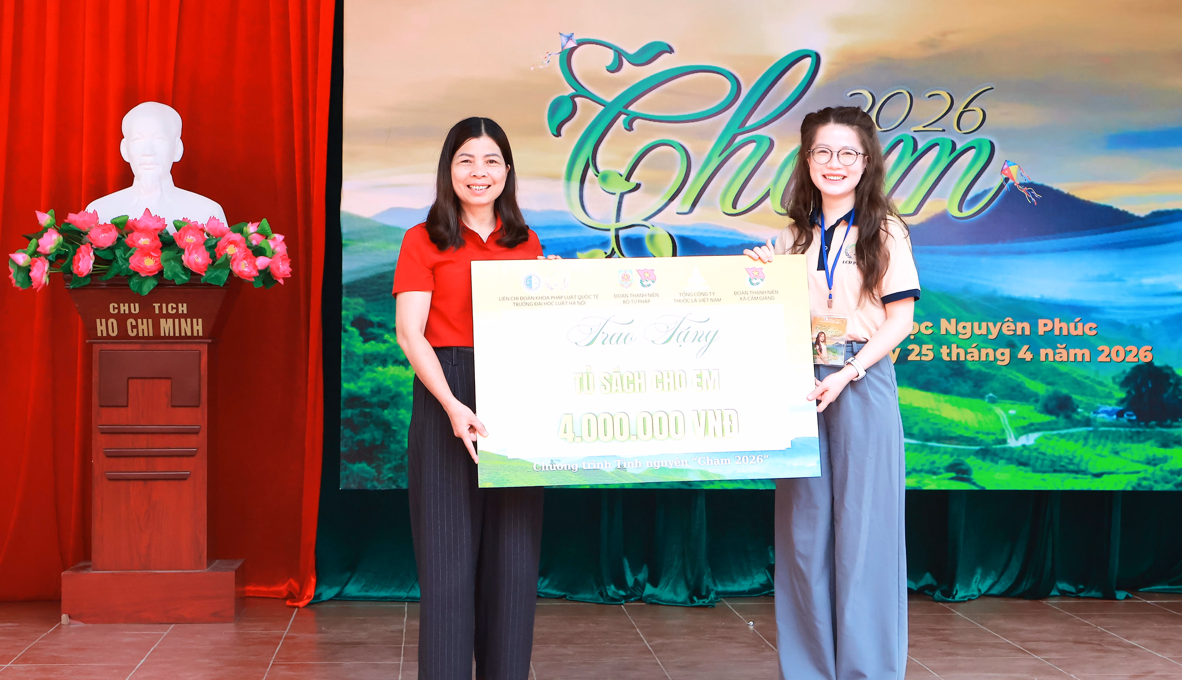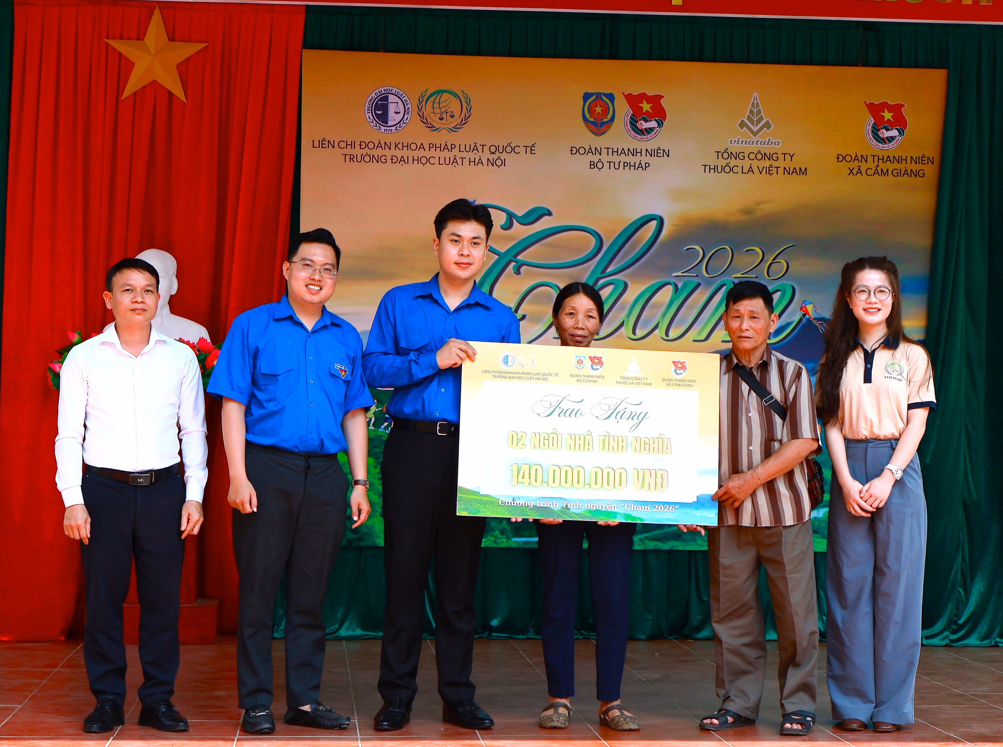 Trên cơ sở sáng kiến của Liên chi Đoàn Khoa Pháp luật Quốc tế (Trường Đại học Luật Hà Nội) và Đoàn Thanh niên xã Cẩm Giàng, Đoàn Thanh niên Bộ Tư pháp đã hỗ trợ tổ chức Chương trình “Chạm 2026” tại xã Cẩm Giàng, tỉnh Thái Nguyên, với nhiều hoạt động có ý nghĩa, góp phần tuyên truyền, phổ biến, giáo dục pháp luật, an sinh xã hội, giúp các em học sinh và gia đình có nơi ở ổn định, cải thiện điều kiện sinh hoạt, khích lệ các em học sinh yên tâm học tập, nỗ lực vươn lên trong cuộc sống.