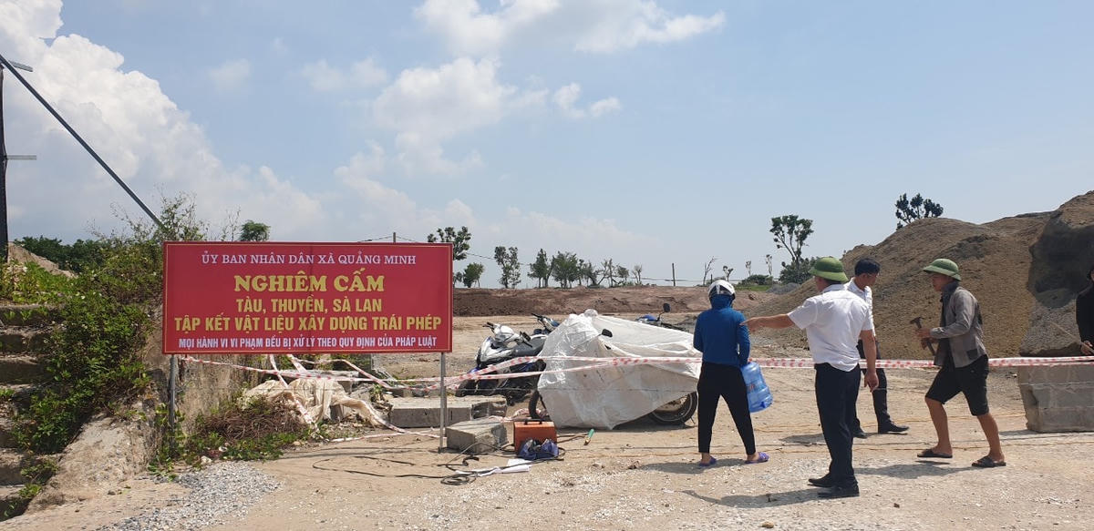Tuy nhiên, trong thời gian trước đây, vẫn xảy ra tình trạng lén lút hoạt động. Sau khi Báo Đại Đoàn Kết phản ánh, UBND huyện Hải Hà và xã Quảng Minh đã kiểm tra, xác minh và cho dựng lại biển cấm, chăng dây ngăn các phương tiện vào tập kết và bốc xếp vật liệu xây dựng.