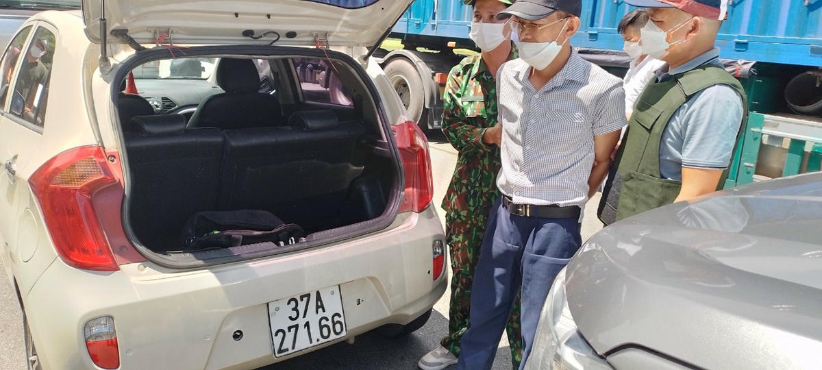 Trước đó, lúc 13h ngày 10/5, trên quốc lộ 1B thuộc xã Xuân Lĩnh (Nghi Xuân, Hà Tĩnh), Phòng chống ma túy và tội phạm BĐBP Hà Tĩnh và phòng PC 04 Công an Hà Tĩnh đồng chủ trì phối hợp với Đồn Biên phòng Cửa khẩu Quốc tế Cầu Treo (BĐBP Hà Tĩnh), Phòng CSGT Công an tỉnh Hà Tĩnh, Công An huyện Nghi Xuân, Cục Hải Quan Hà Tĩnh phát hiện xe ô tô Kia Morning màu bạc, biển kiểm soát 37A–27166 có nhiều nghi vấn về vận chuyển trái phép chất ma túy.