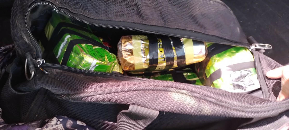Ngay lập tức, lực lượng phối hợp nói trên tổ chức vây bắt. Tiến hành kiểm tra phía sau cốp xe ô tô, lực lượng phối hợp phát hiện thu giữ 01 túi xách màu nâu bên trong chứa 5 gói ma túy tổng hợp dạng đá trọng lượng 5 kg.