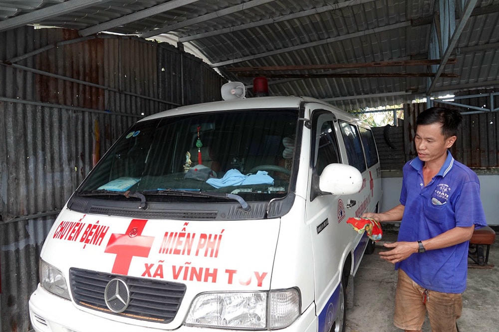 Chạy được vài năm, xe thường xuyên hư hỏng, sửa chữa tốn kém nên anh bán và mua lại ô tô 16 chỗ trị giá hơn 100 triệu đồng để làm xe cấp cứu cho đến nay.