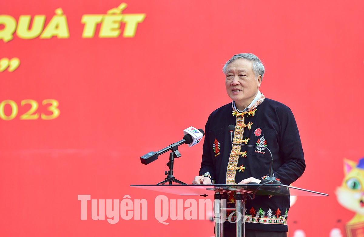 Phát biểu tại chương trình, Chánh án Tòa án nhân dân tối cao Nguyễn Hòa Bình đánh giá cao tỉnh Tuyên Quang đã chủ động tổ chức hoạt động mang đậm tính nhân văn giúp nhân dân vui xuân đón Tết đầm ấm; đồng thời cảm ơn các doanh nghiệp sau 1 năm khó khăn vẫn dành những phần quà đầy ý nghĩa cho người nghèo.