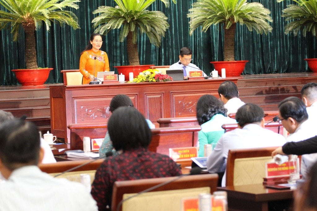 Đại biểu Hoàng Thị Diễm Tuyết (quận 5) đặt câu hỏi: “Người dân sử dụng phương tiện giao thông cá nhân rất nhiều. Đây là một trong những nguyên nhân gây ùn tắc giao thông. Sở GTVT thành phố có kế hoạch phát triển giao thông công cộng như thế nào?”.