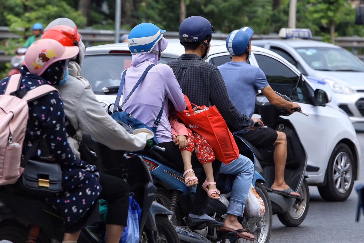 Sau kỳ nghỉ Lễ Quốc khánh dài đến 4 ngày, sáng 4/9 nhiều người bắt đầu đổ về Thủ đô để chuẩn bị cho ngày làm việc mới vào sáng mai. Để tránh bị ùn tắc giao thông, nhiều gia đình chọn cách đi vào sáng sớm khiến nhiều em nhỏ ngủ gật vượt đường xa.