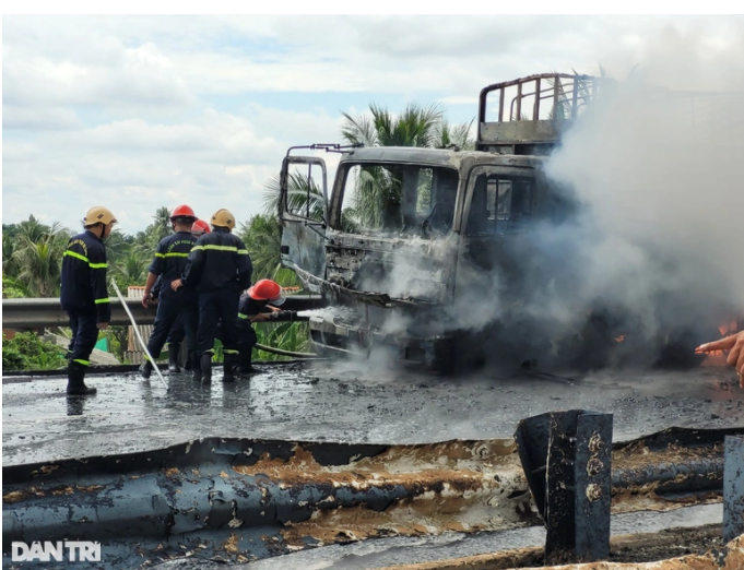Thông tin ban đầu, khoảng 12h45 ngày 4/5, tài xế Nguyễn Hoàng Thương (50 tuổi), ngụ TP Cần Thơ điều khiển xe tải chở nhớt mang biển số 65C-02342 di chuyển bên làn đường cao tốc Trung Lương - TP HCM hướng về Tiền Giang.