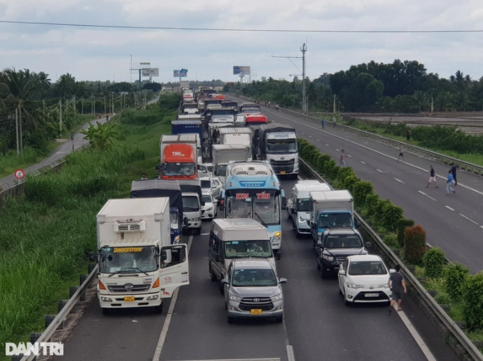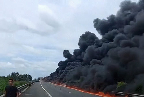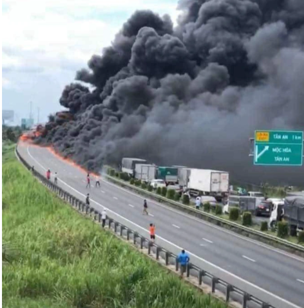 Vụ cháy gây kẹt xe trầm trọng trên cao tốc, một số xe đi gần xe chở nhớt bị ảnh hưởng, xe chở nhớt bị thiêu rụi hoàn toàn.
