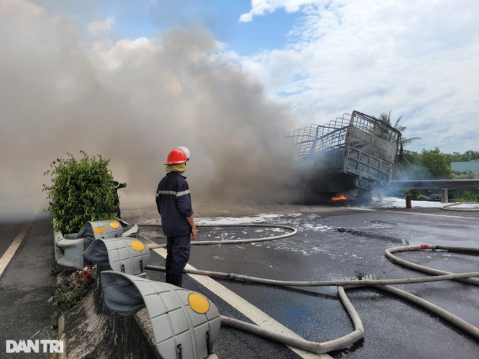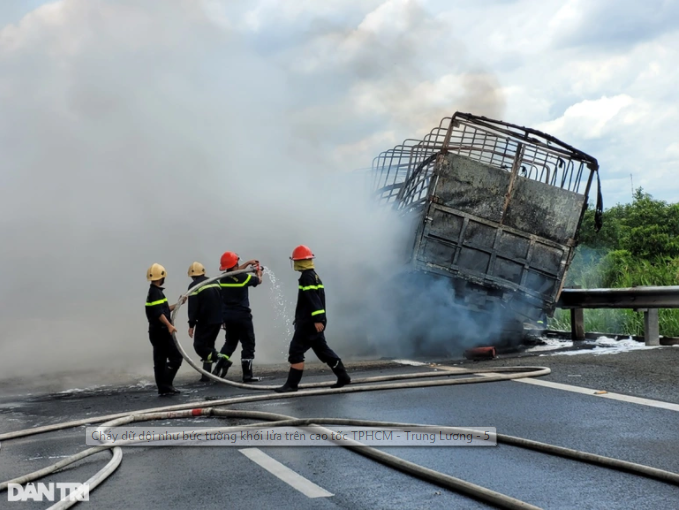 Cháy dữ dội như 'bức tường khói lửa' trên cao tốc TP HCM - Trung Lương