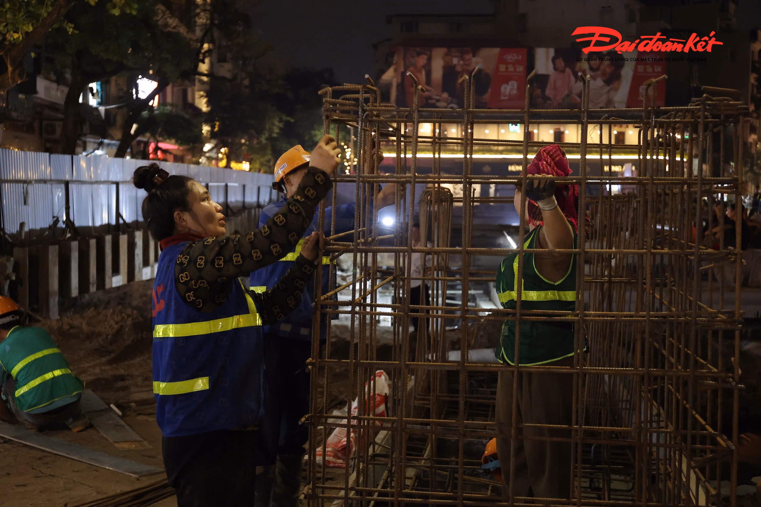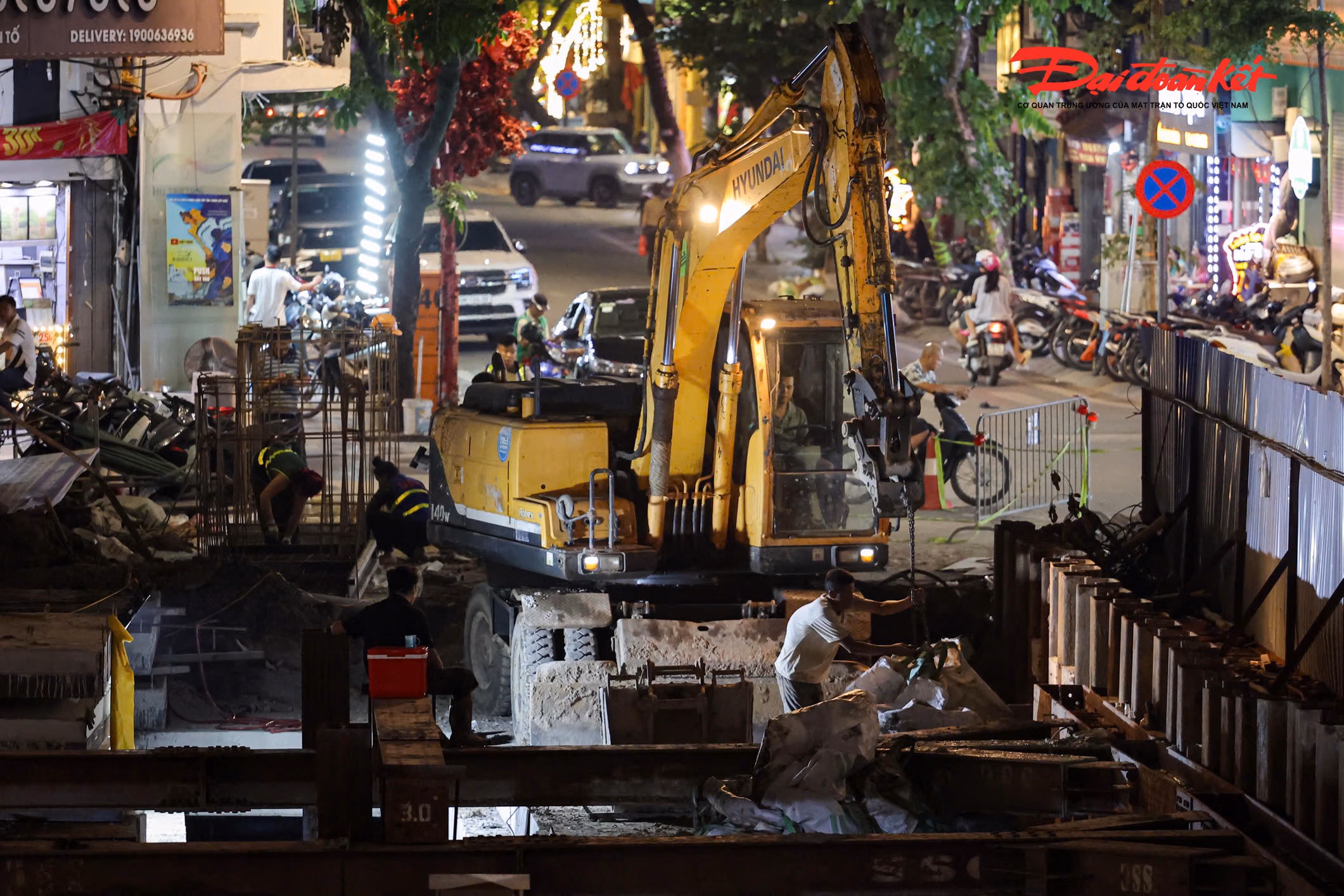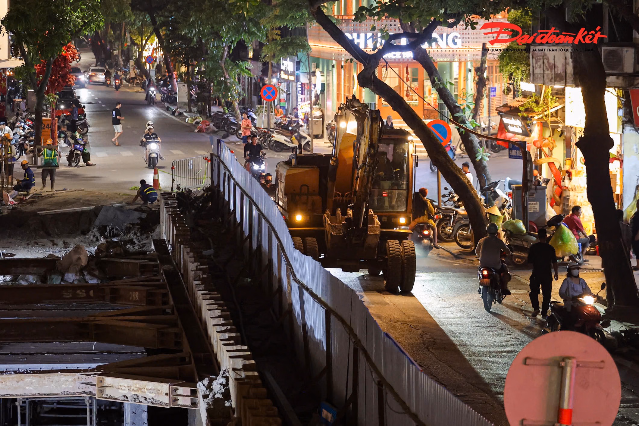 Ghi nhận trên phố Phùng Hưng, các điểm thi công dọc toàn tuyến đang được triển khai khẩn trương, bảo đảm tiến độ.