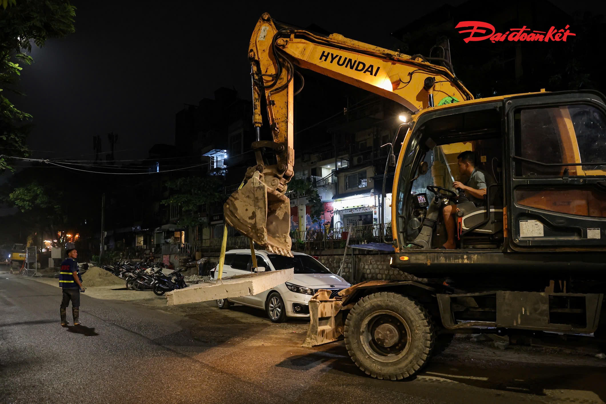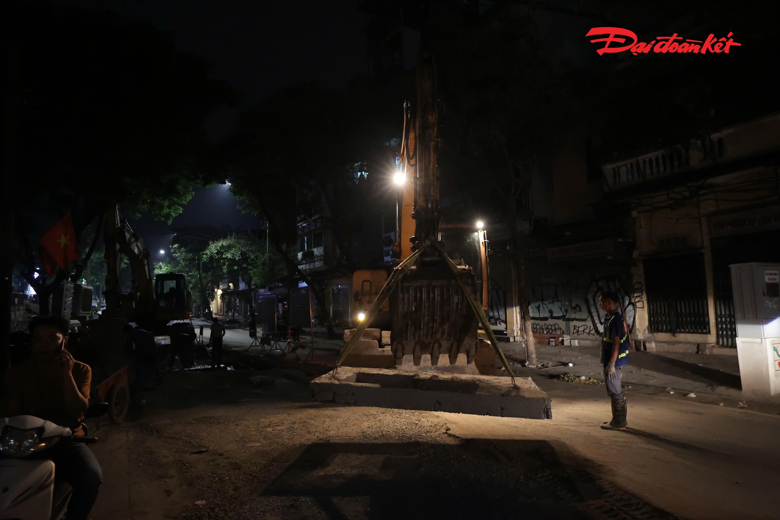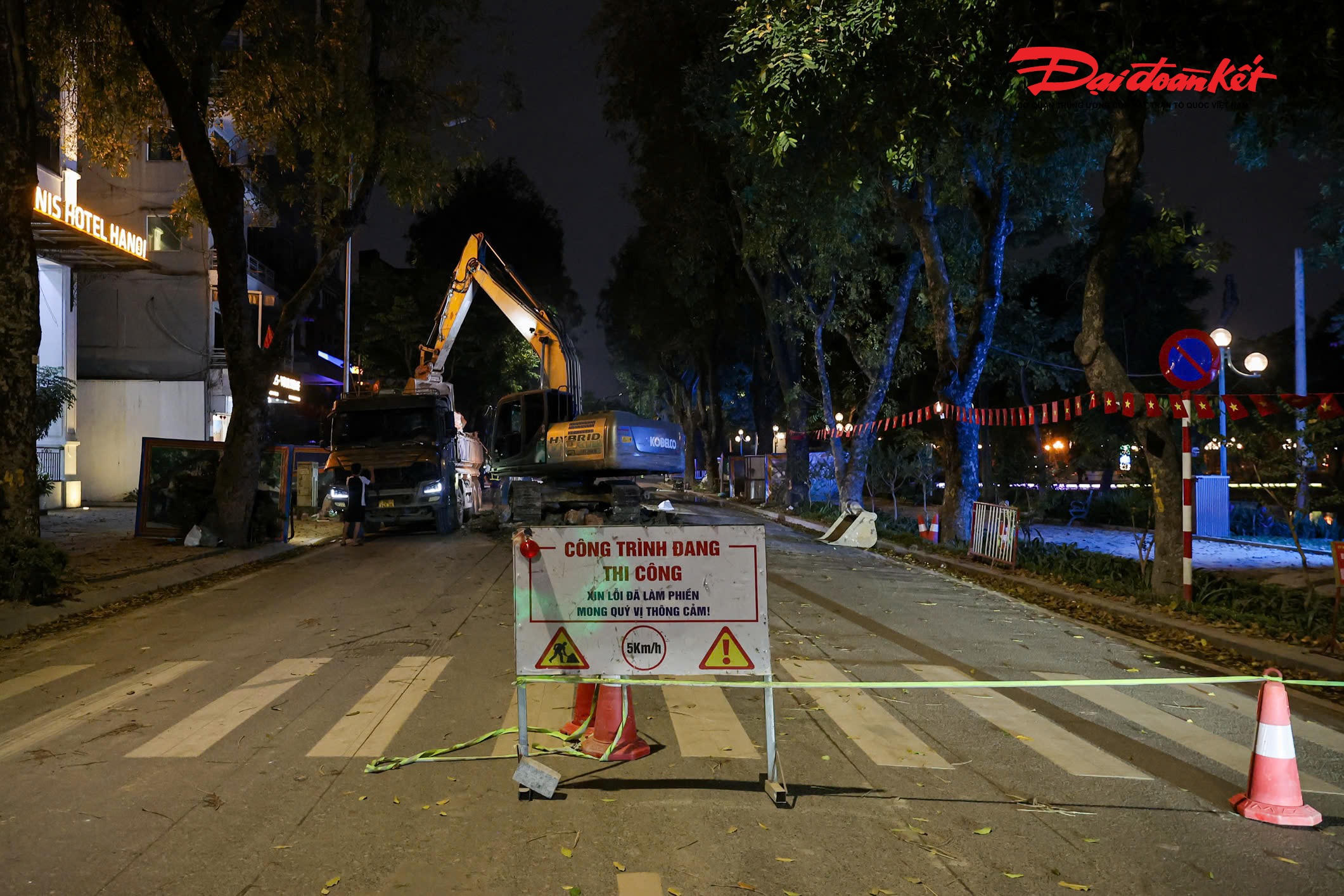 Ghi nhận trên phố Phùng Hưng, các điểm thi công dọc toàn tuyến đang được triển khai khẩn trương, bảo đảm tiến độ.