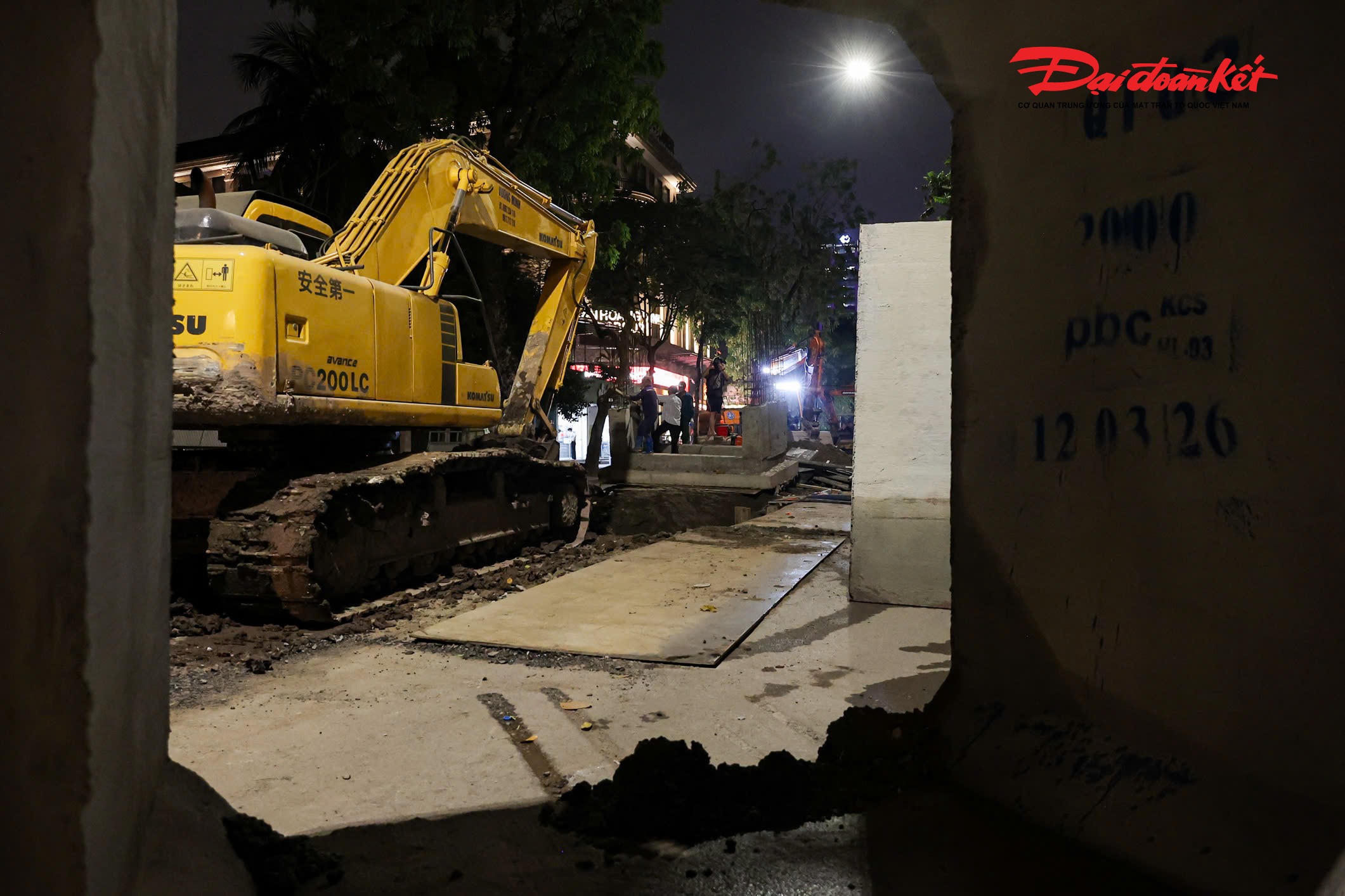 Công nhân tiến hành lắp đặt, căn chỉnh và chèn kín các đốt cống hộp, nhằm hạn chế tối đa ảnh hưởng đến hệ thống hạ tầng và cáp ngầm hiện hữu.