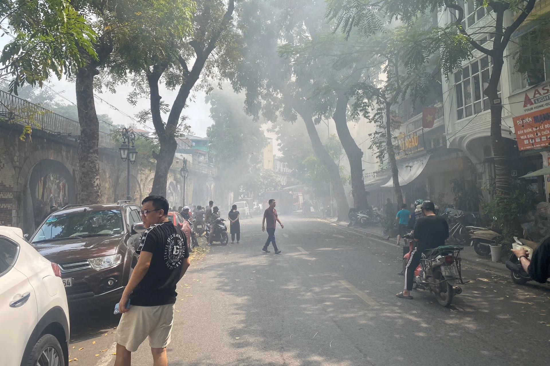 Tuy nhiên, do vụ cháy nằm tại khu vực phố cổ, nhiều người qua lại nên khiến tuyến phố Phùng Hưng - Hàng Cót bị ùn ứ.