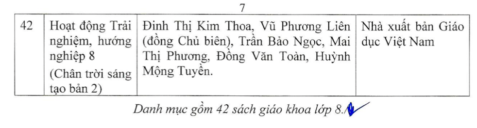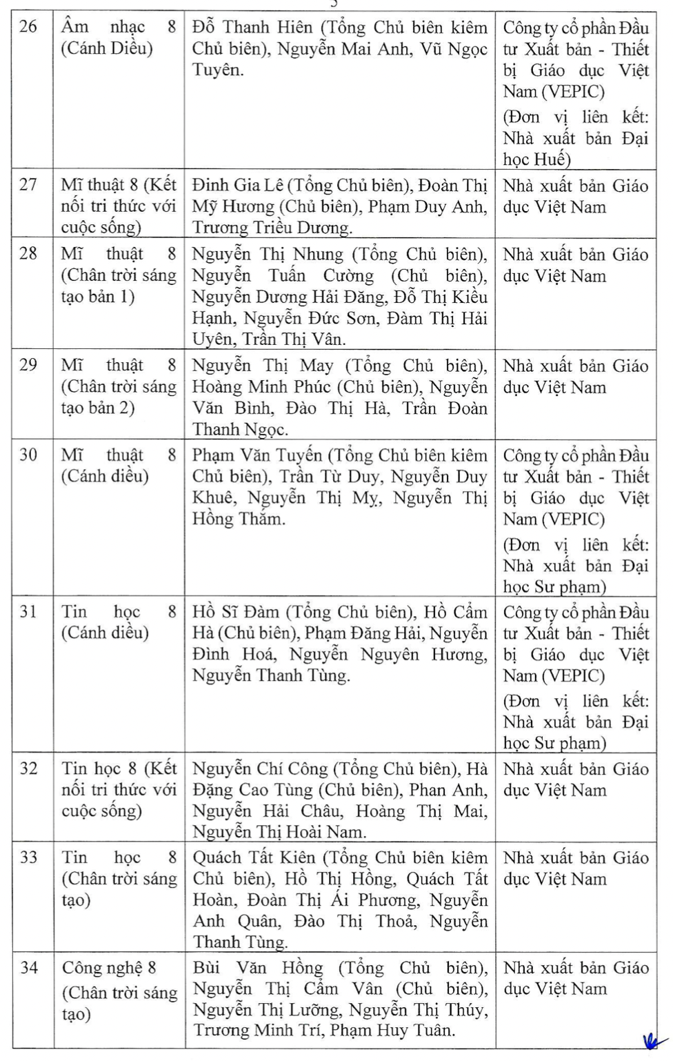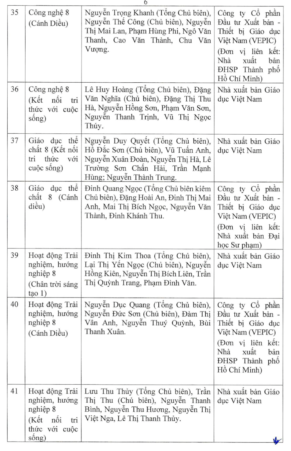 Danh mục sách giáo khoa lớp 8 đã được Bộ GDĐT phê duyệt như sau: