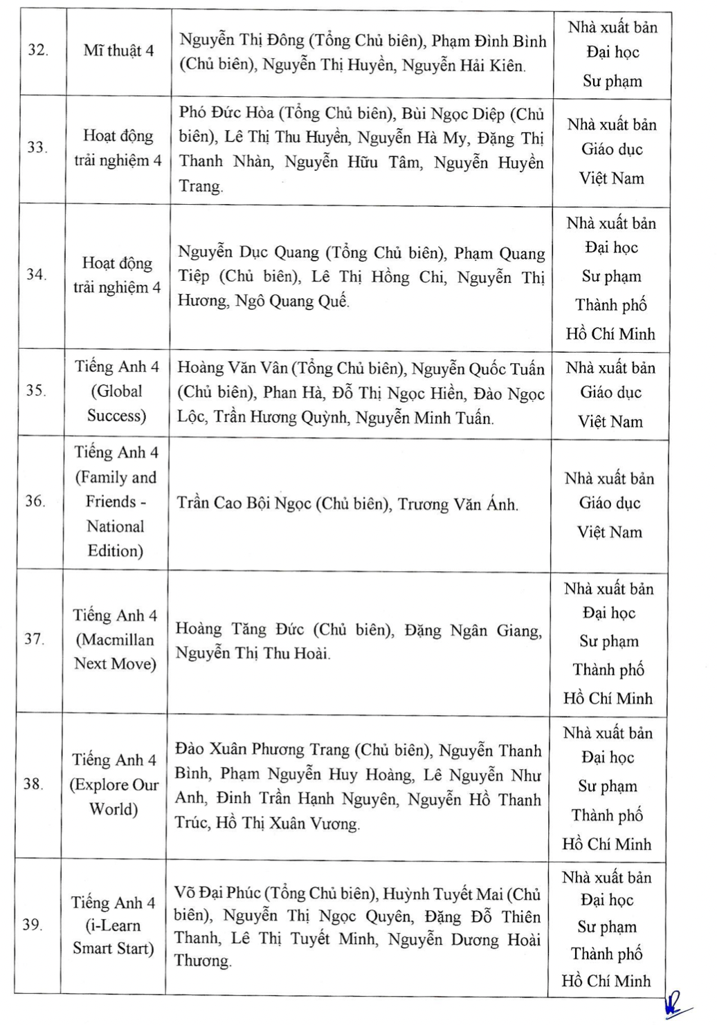 Căn cứ danh mục này, các địa phương tổ chức lựa chọn sách giáo khoa phù hợp để triển khai Chương trình phổ thông 2018 áp dụng cho lớp 4 từ năm học 2023 - 2024.