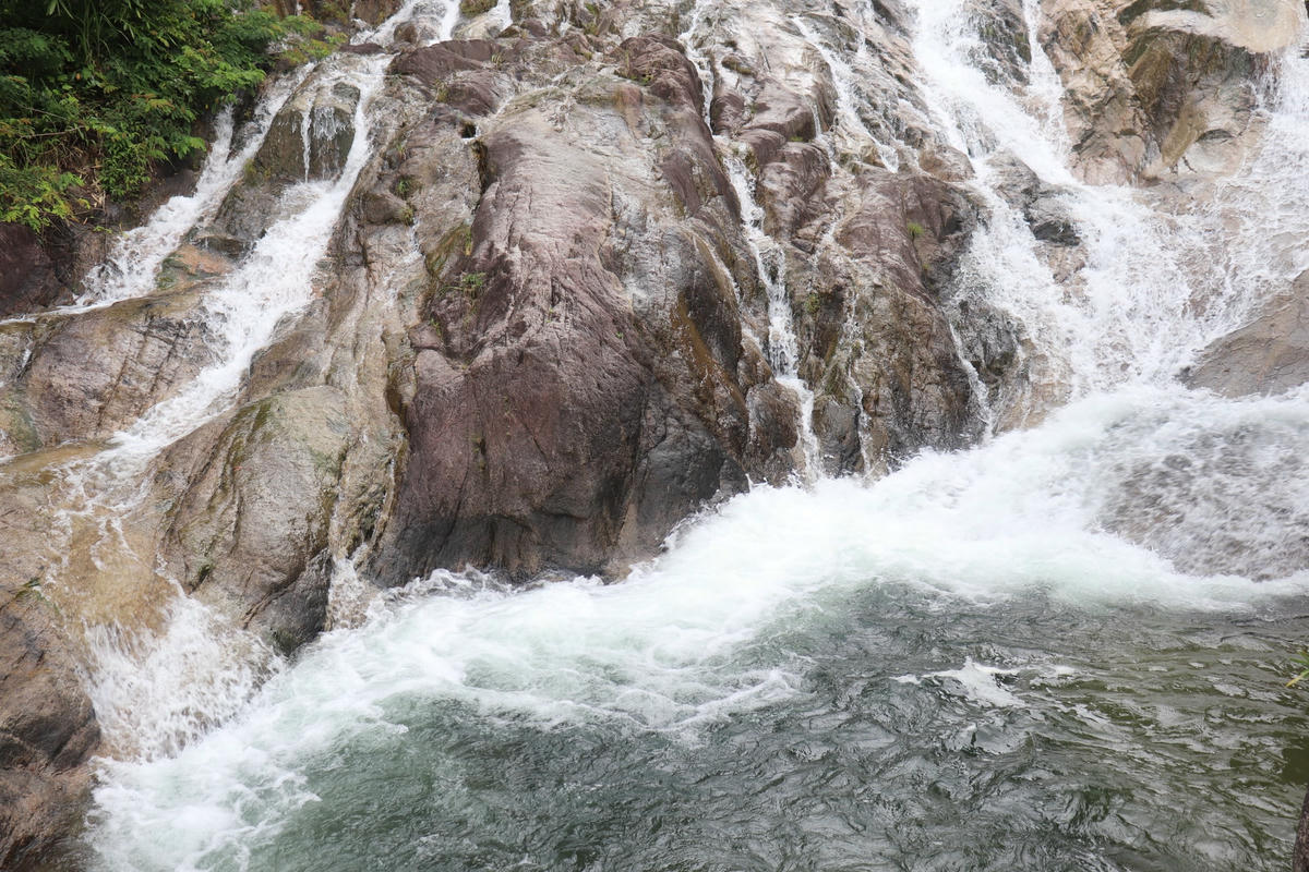 Dòng chảy của thác nước từ trên cao hàng trăm mét đổ xuống qua cửa thông gió nơi lưng chừng thác với những tiếng tu tu như tiếng hú gọi từ đại ngàn muôn thuở, dòng chảy dưới chân thác tạo nên một dòng suối trong veo, mát rượi.