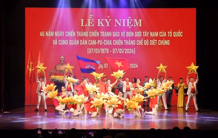 Sáng 7/1, tại Hà Nội, UBTƯ MTTQ Việt Nam, Liên hiệp các tổ chức hữu nghị Việt Nam và UBND TP Hà Nội phối hợp tổ chức Lễ kỷ niệm 45 năm Ngày Chiến thắng chiến tranh bảo vệ biên giới Tây Nam của Tổ quốc và cùng quân dân Campuchia chiến thắng chế độ diệt chủng (7/1/1979 – 7/1/2024). Chủ tịch nước Võ Văn Thưởng dự lễ kỷ niệm.