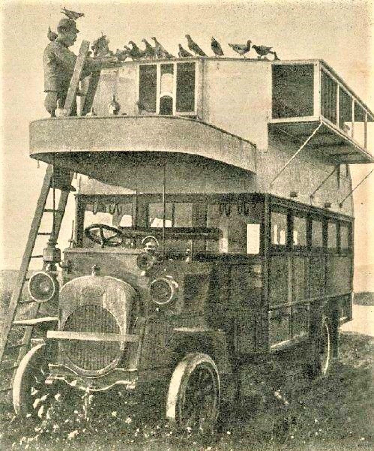 Trong Thế chiến I, cơ sở để liên lạc quân sự bằng chim bồ câu là một trạm chim bồ câu cố định hoặc di động (dã chiến), có thể được đặt trên xe đẩy hoặc xe hơi được trang bị đặc biệt. Trung bình, phạm vi hoạt động của các trạm bồ câu cố định khoảng 300-500 km, của các trạm di động ngắn hơn (50-150 km).