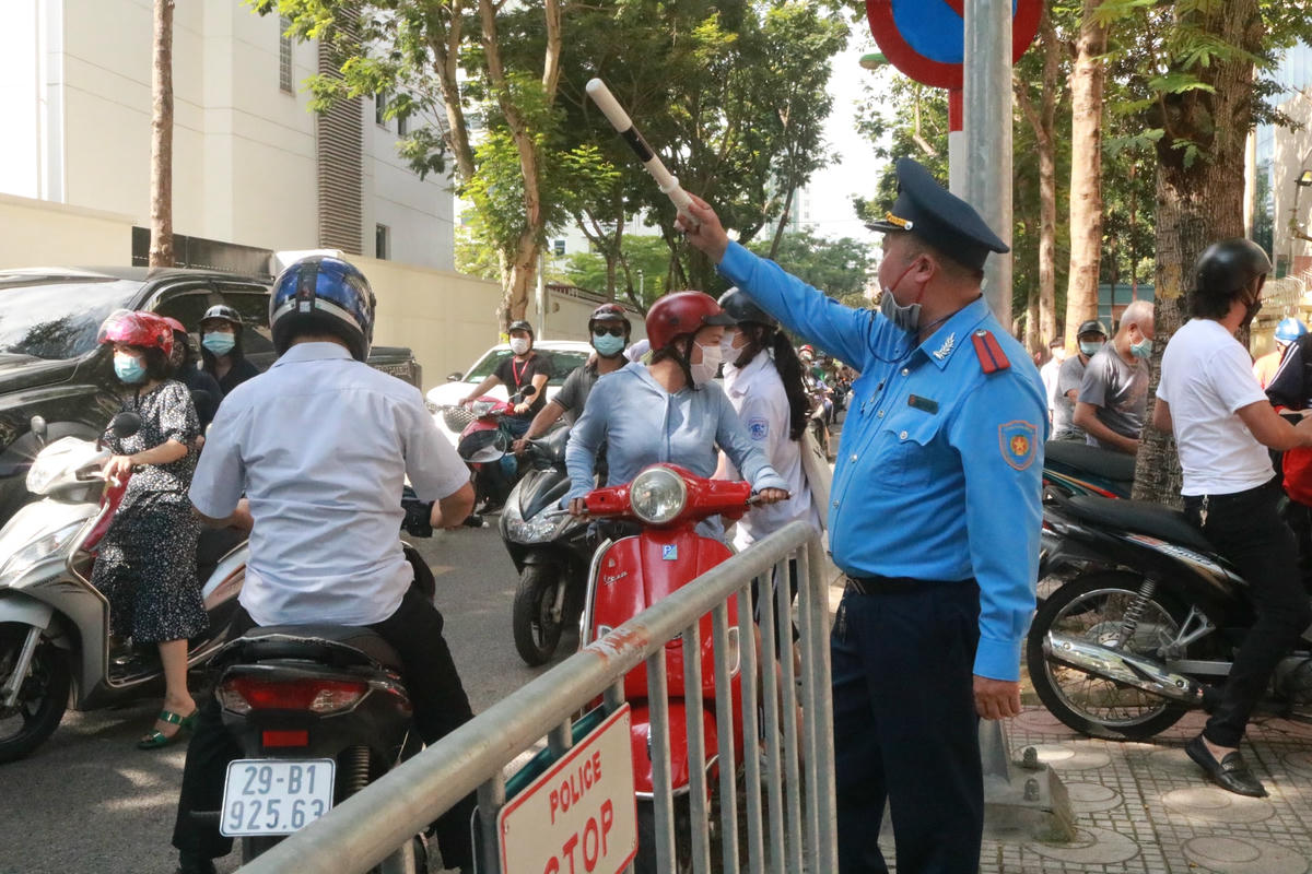 Theo bà Cẩm, sáng 17/6, có 587 thí sinh đến làm thủ tục dự thi, vắng 25 thí sinh. Ngoài quy chế thi, các học sinh được dặn dò không mang ba lô, cặp sách đến điểm thi trong các buổi thi.