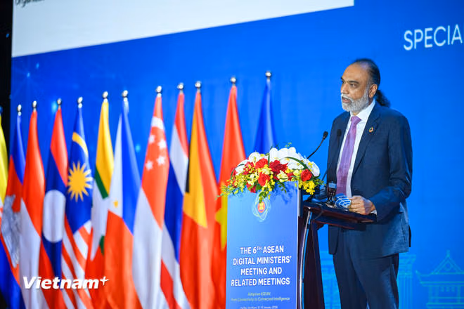 Ông Amandeep Singh Gill - Phó Tổng Thư ký, Đặc phái viên về Công nghệ của Tổng Thư ký Liên Hợp Quốc, khách mời của chủ nhà Việt Nam chia sẻ về những xu hướng toàn cầu trong chuyển đổi số và trí tuệ nhân tạo, đồng thời đưa ra một số khuyến nghị cho ASEAN trong việc tiếp tục theo đuổi cách tiếp cận cân bằng, lấy con người làm trung tâm, bảo đảm công nghệ số đóng góp thiết thực cho phát triển bền vững.