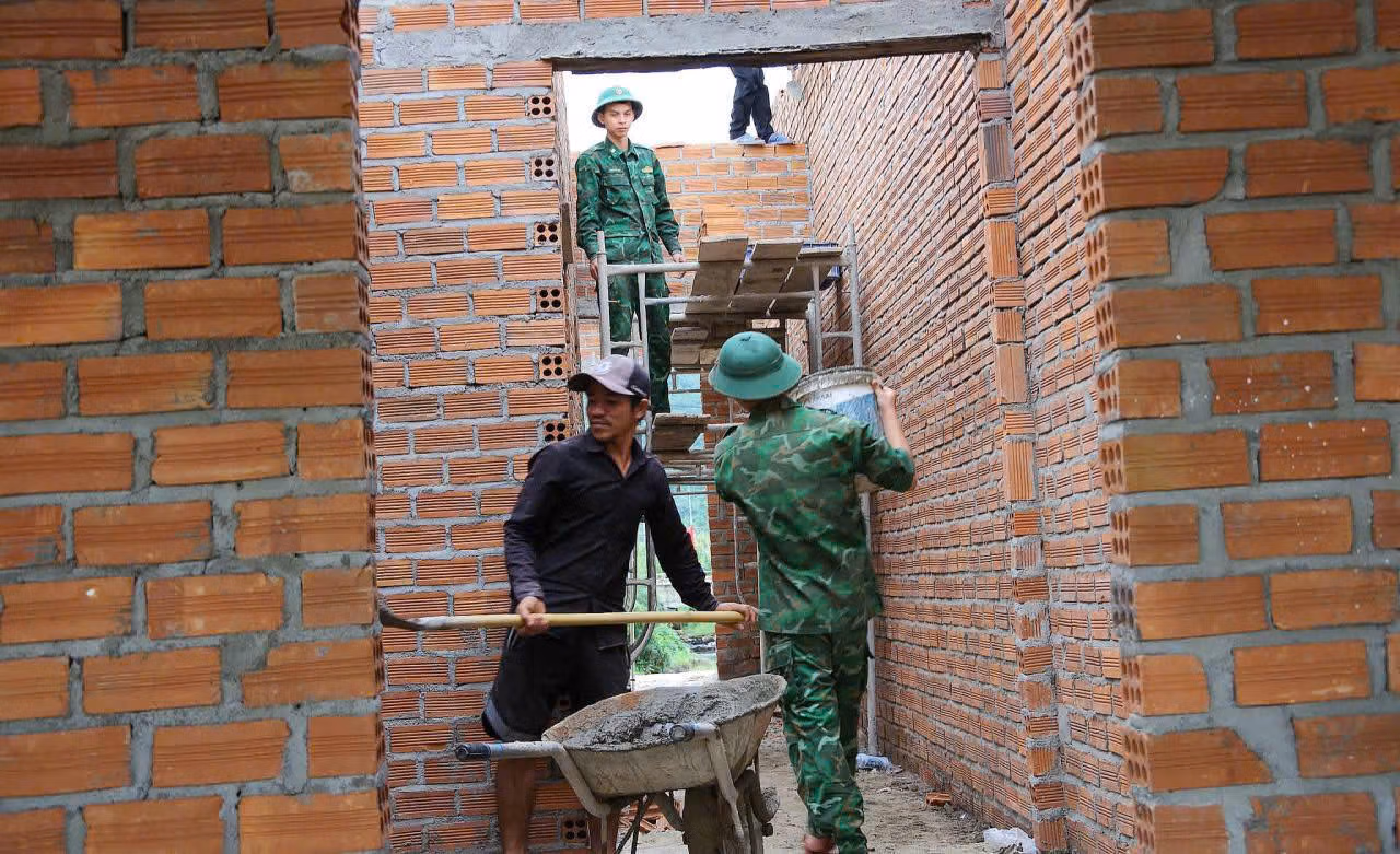 Thực hiện Chiến dịch Quang Trung, Bộ đội Biên phòng tỉnh Khánh Hòa được giao phối hợp hỗ trợ xây dựng 4 căn nhà cho các hộ dân bị thiệt hại nặng nề do mưa lũ. Báo cáo với đoàn công tác, chỉ huy đơn vị cho biết, lực lượng Bộ đội Biên phòng tỉnh đã huy động cán bộ, chiến sĩ có tay nghề, tổ chức ăn ở tập trung tại địa bàn, làm việc liên tục, không quản nắng mưa, kể cả ngày nghỉ; tranh thủ tối đa thời gian, điều kiện thời tiết thuận lợi để đẩy nhanh tiến độ thi công, bảo đảm chất lượng công trình.