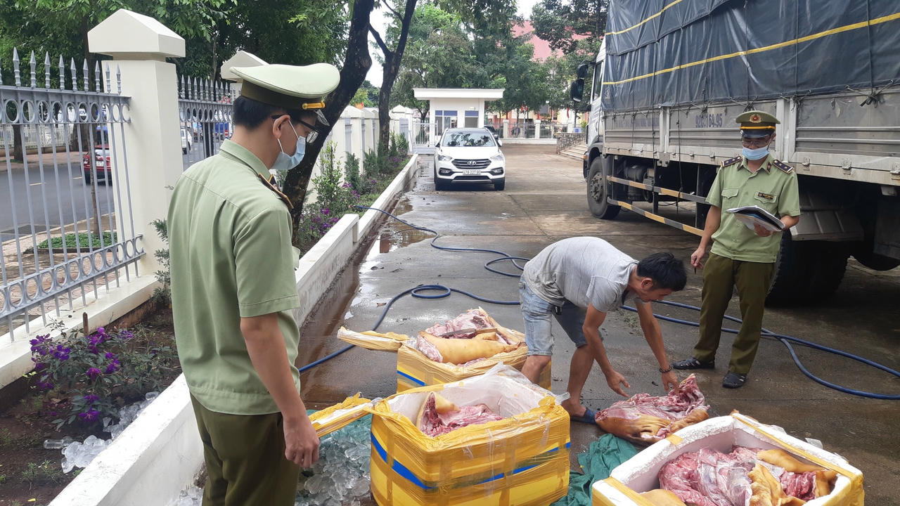 Cục Quản lý thị trường tỉnh Đắk Lắk vừa phối hợp với Phòng CSGT, Công an tỉnh Đắk Lắk phát hiện và bắt giữ xe tải chở 3 tạ thịt lợn có dấu hiệu phân hủy, bốc mùi hôi thối đang trên đường đi tiêu thụ.
