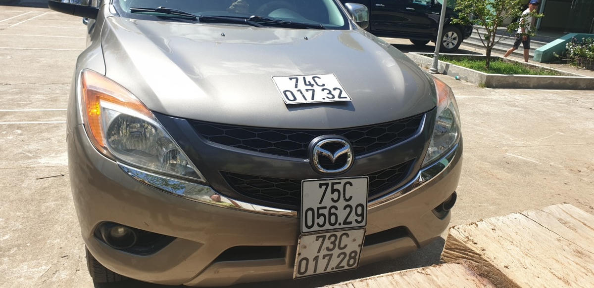 Kiểm tra trên xe có 14 phách gỗ không có hồ sơ hợp pháp và 3 biển số khác nhau. Đối chiếu giấy tờ xe thì biển số 73C-056.29 là biển giả, biển số thật là 73C-017.28.
