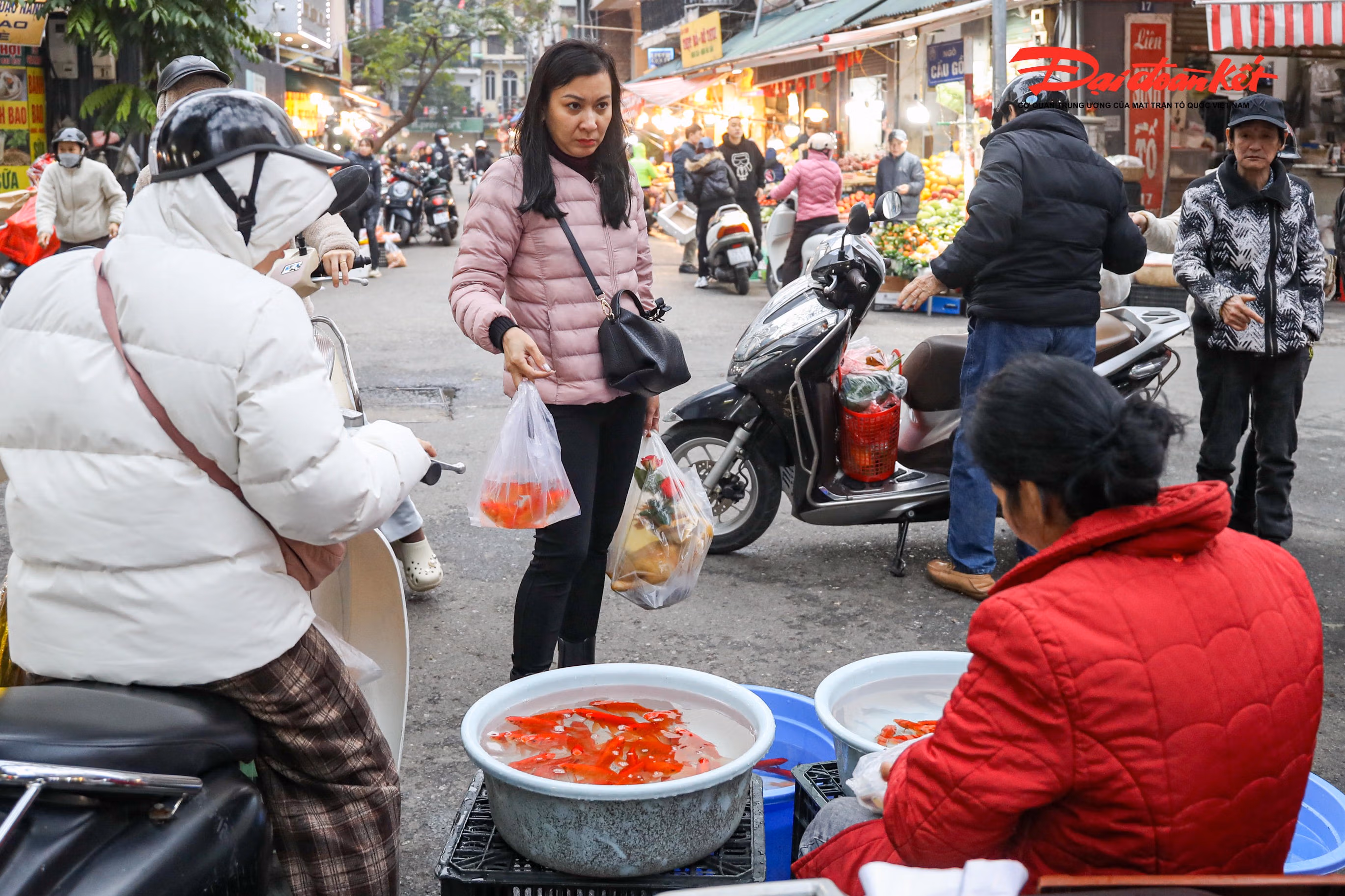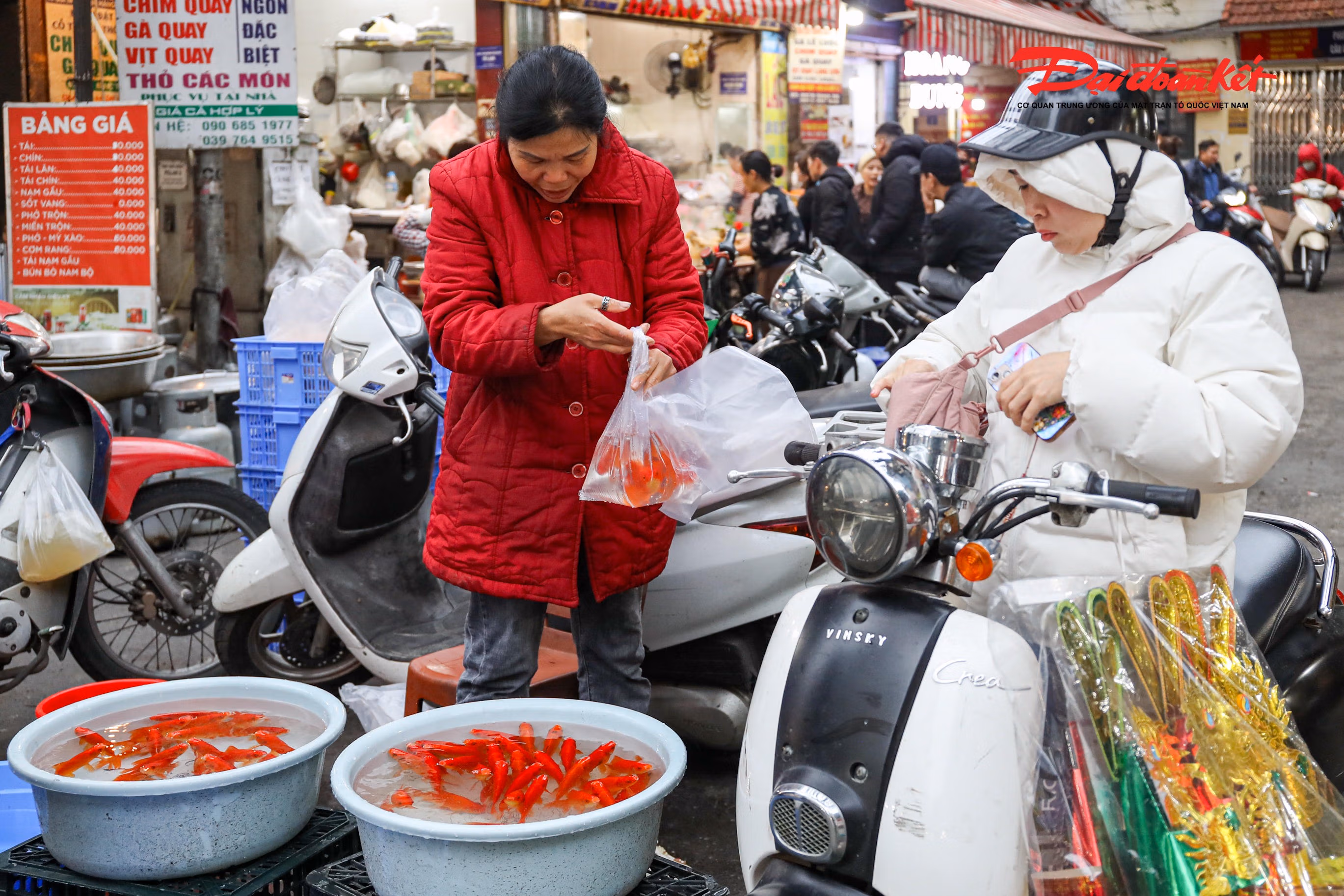 Cá chép đỏ lễ vật không thể thiếu trong phong tục cúng ông Công, ông Táo cũng được bày bán với đủ loại kích cỡ, mức giá dao động từ 50.000 đến 100.000 đồng/ 3 con.