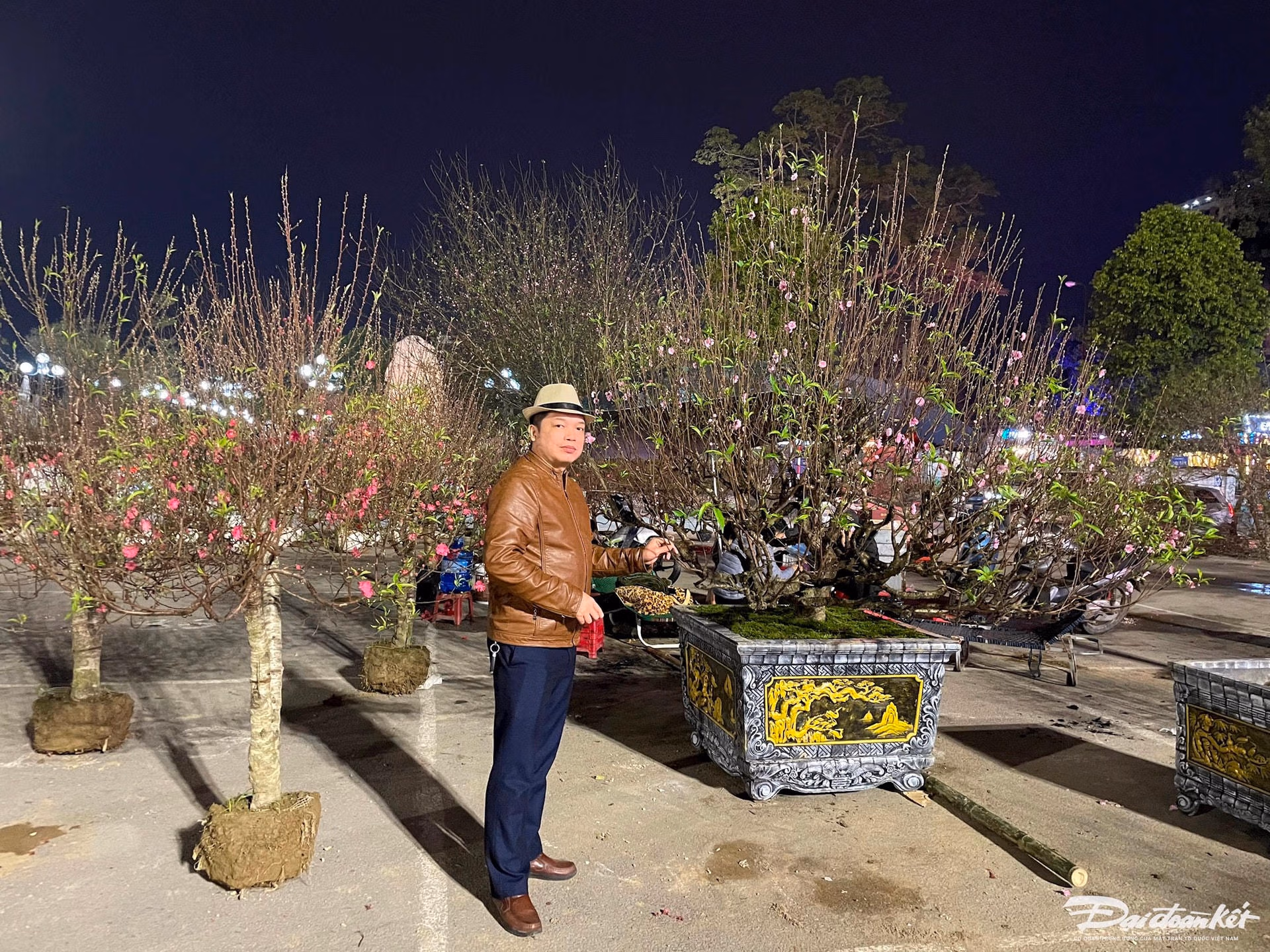 Chợ hoa đào Tết lớn nhất Thái Nguyên dưới tiết trời lạnh giá về đêm