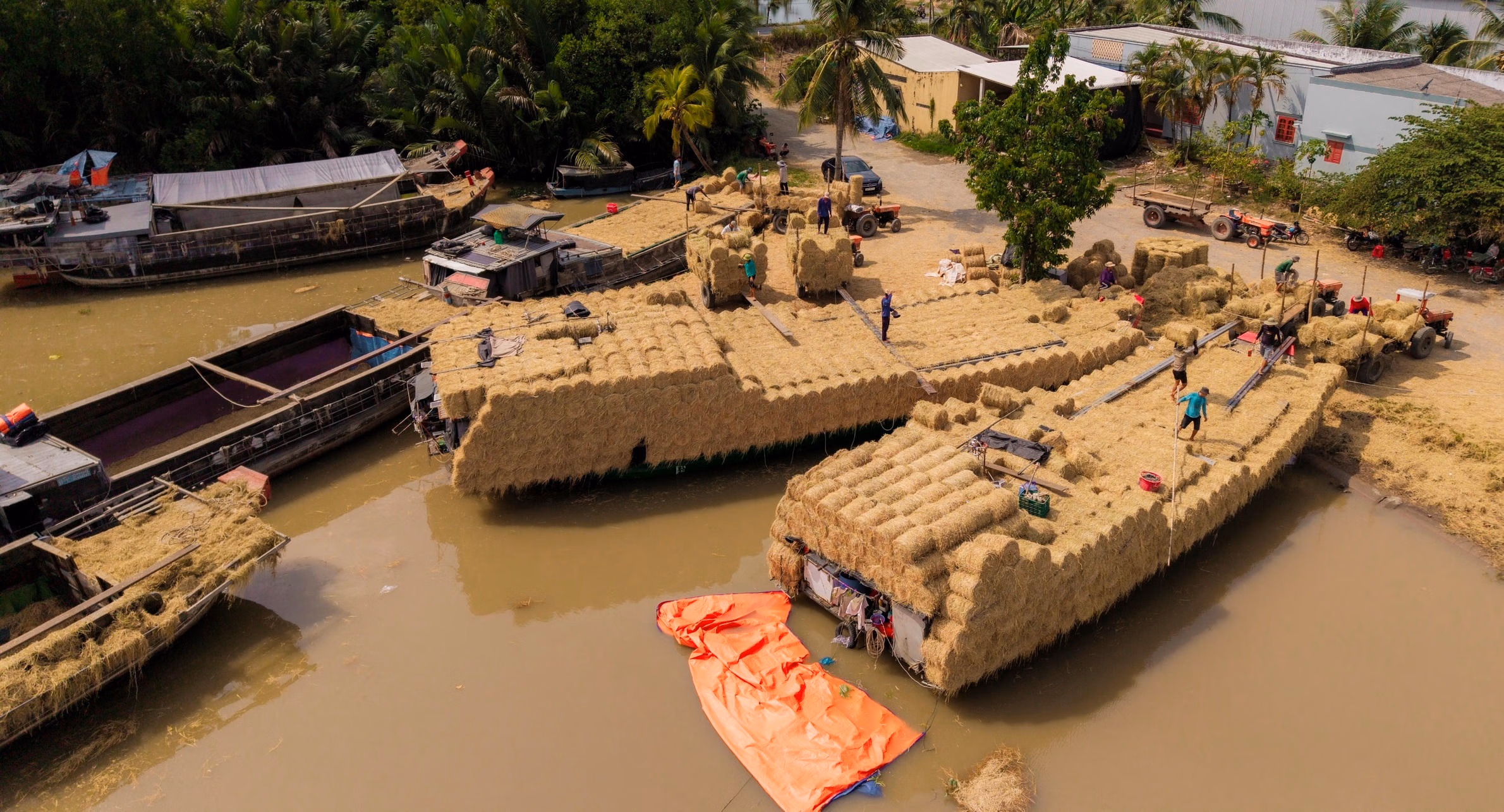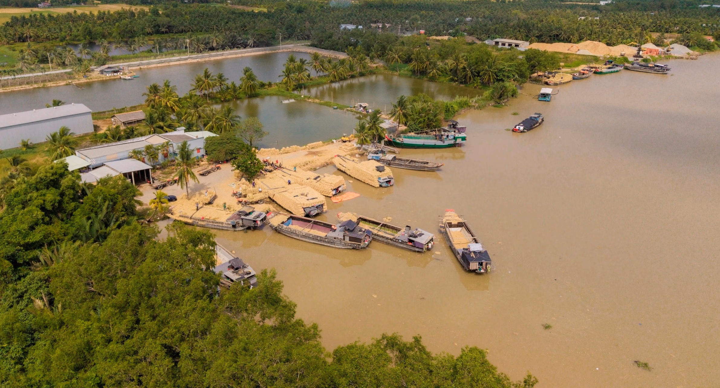 Giữa nắng tháng 4, chợ rơm cuộn Ba Lai tấp nập ghe tàu, tạo sinh kế ổn định cho lao động địa phương và giúp nông dân gia tăng giá trị từ phụ phẩm nông nghiệp.