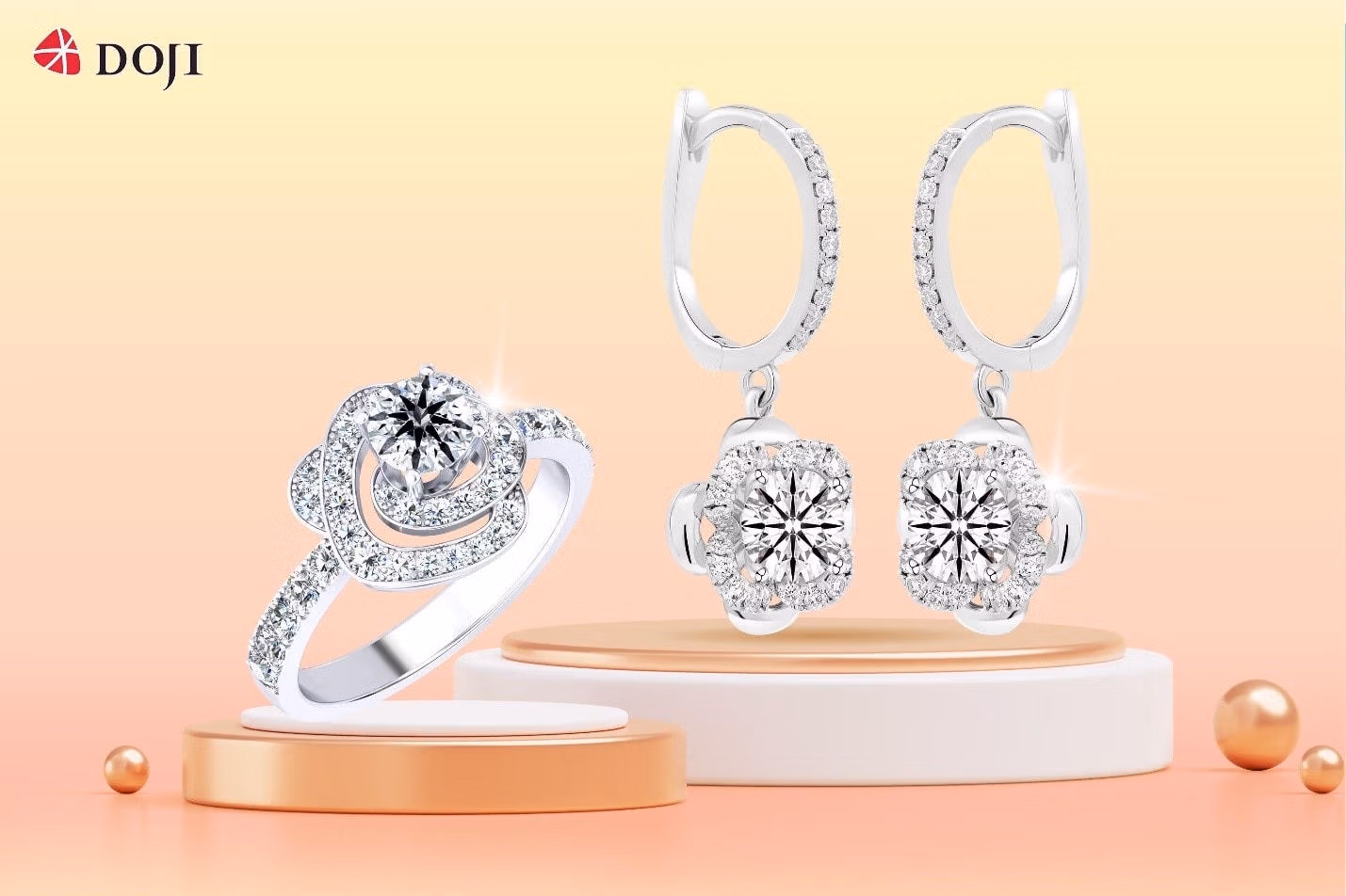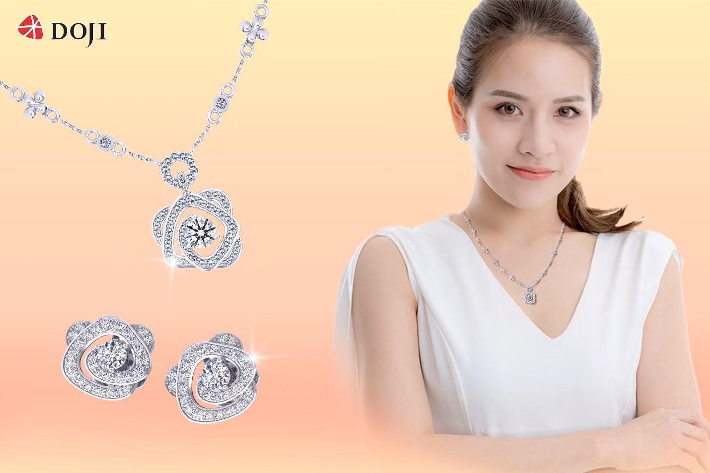 Dịp này, DOJI triển khai chương trình "Sắm Trang sức Sang - Nhận ngàn Lộc phát" ưu đãi lớn tới 25% khi mua Trang sức Kim cương từ 12/04 - 02/05/2023. Khách hàng còn có cơ hội nhận thêm e-voucher ưu đãi tới 20% rất nhiều dòng hàng.