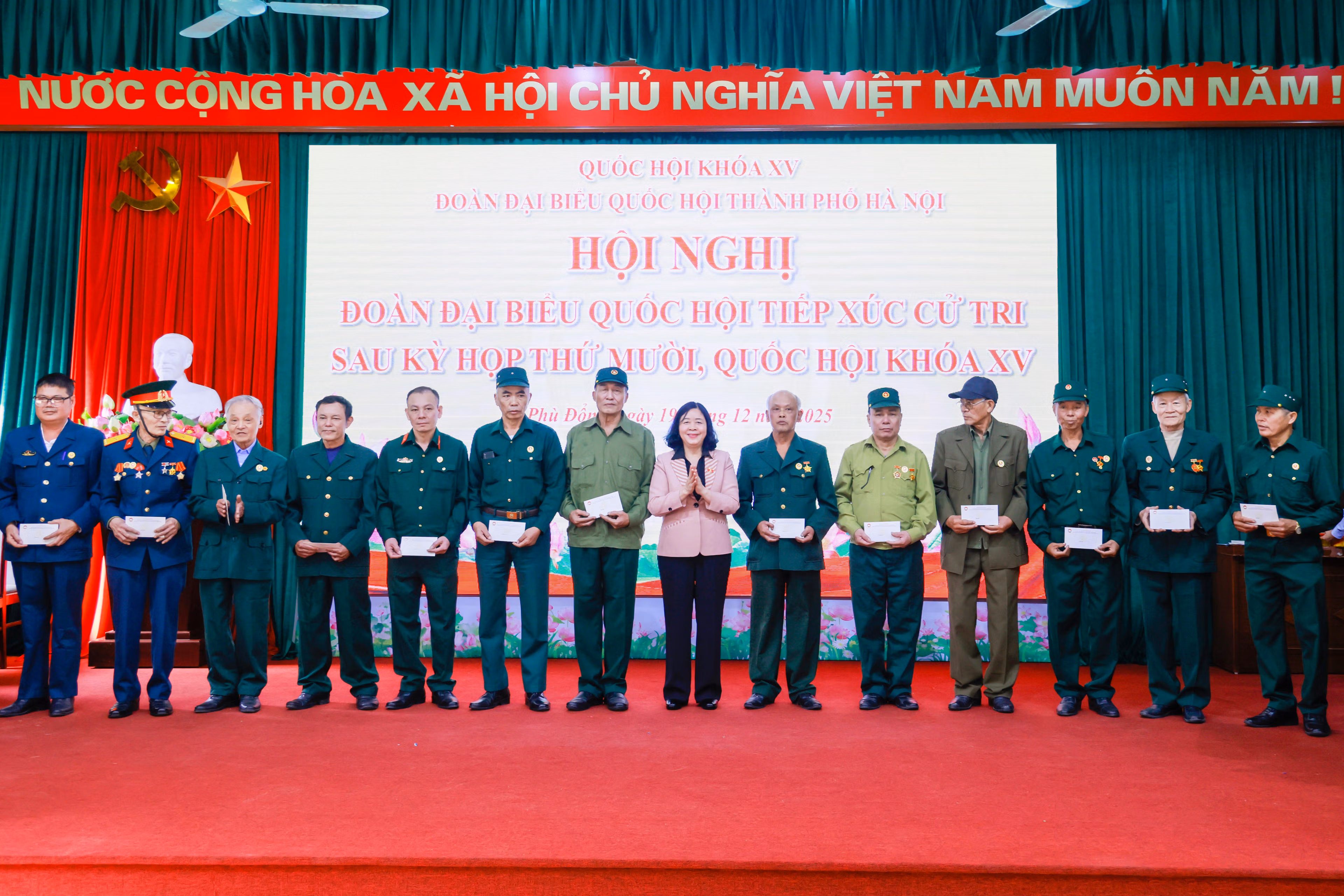 Tại Hội nghị, nhân dịp kỷ niệm 81 năm Ngày thành lập Quân đội nhân dân Việt Nam (22/12/1944 – 22/12/2025) và Tết Nguyên đán Bính Ngọ 2026 đang đến gần, Chủ tịch Bùi Thị Minh Hoài đã tặng quà cho 50 cựu chiến binh của 4 xã Phù Đổng, Bát Tràng, Gia Lâm, Thuận An.