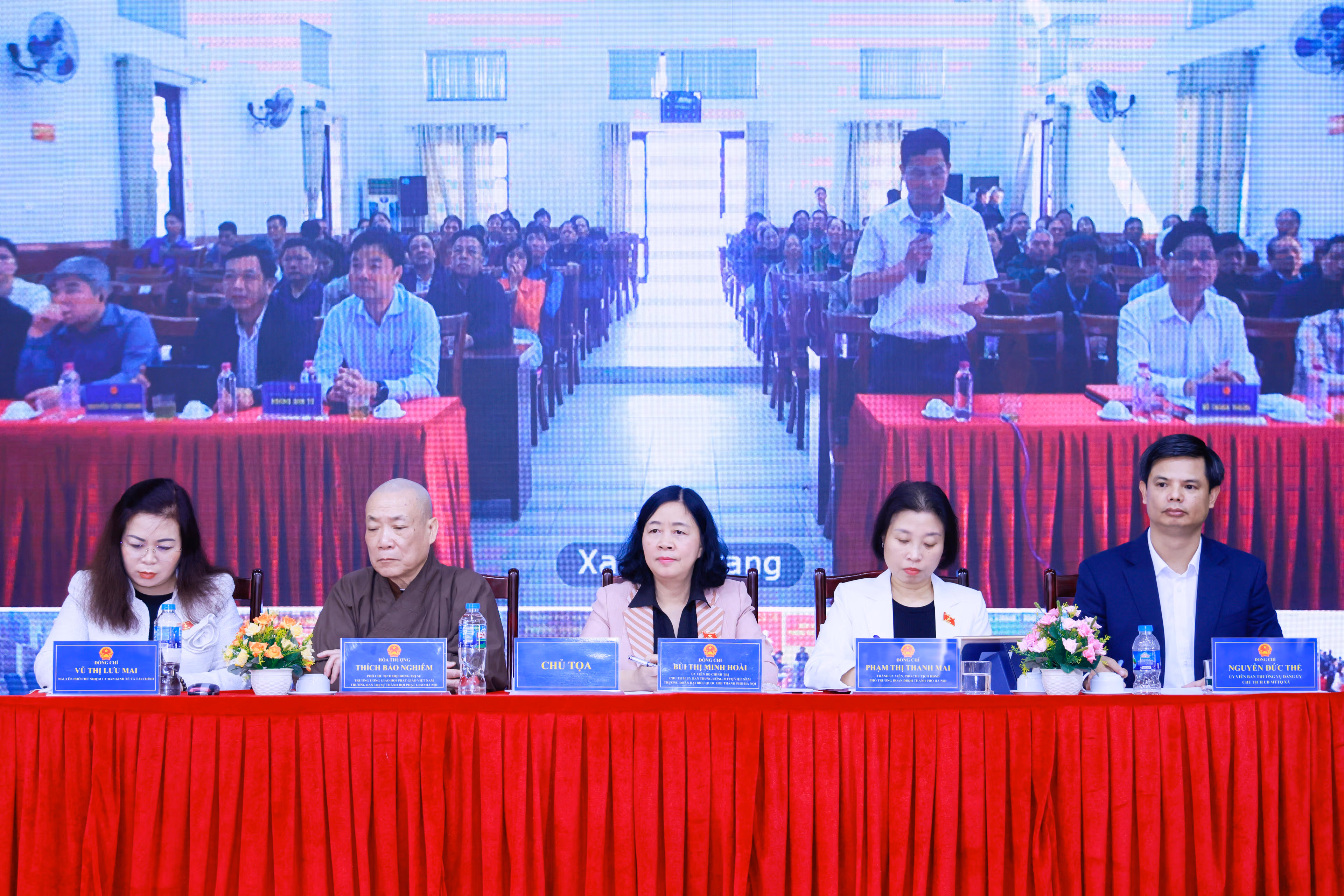 Thay mặt Tổ đại biểu Quốc hội Đơn vị bầu cử số 4 ghi nhận và tiếp thu những ý kiến của các cử tri tại Hội nghị, Chủ tịch Bùi Thị Minh Hoài trân trọng cảm ơn cử tri của 11 xã, phường đã tham dự trách nhiệm, đông đủ và trao gửi niềm tin của cử tri tới các đại biểu Quốc hội. Những ý kiến của các cử tri phát biểu tại Hội nghị với tinh thần tâm huyết, trách nhiệm cao, thể hiện sự đồng thuận hưởng ứng chủ trương, chính sách của Đảng, những quyết sách theo thẩm quyền của Quốc hội, sự điều hành của Chính phủ trong phát triển kinh tế - xã hội, đảm bảo quốc phòng, an ninh, mở rộng hợp tác đối ngoại, nâng cao vị thế của đất nước trên trường quốc tế.