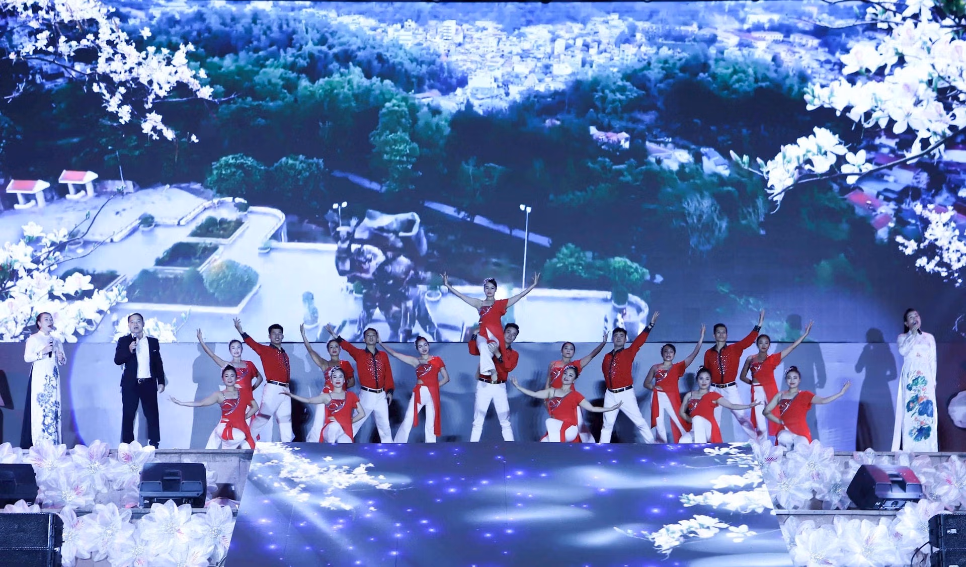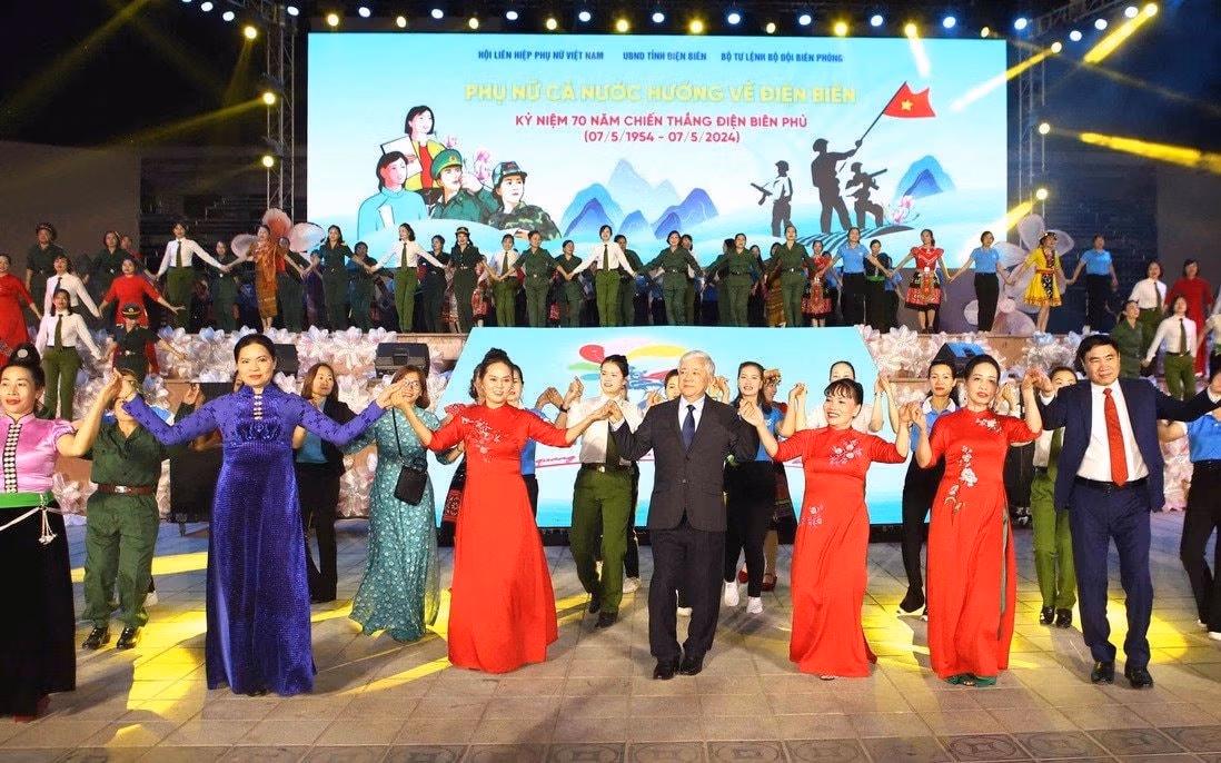 Bên cạnh đó, hơn 300 hội viên, phụ nữ Điện Biên và các đại biểu cả nước biểu diễn màn dân vũ tập thể, với tình cảm "Phụ nữ cả nước hướng về Điện Biên" trên đại ngàn Tây Bắc.