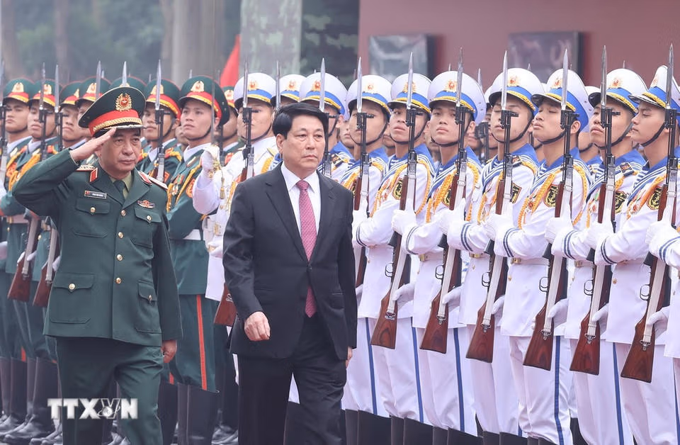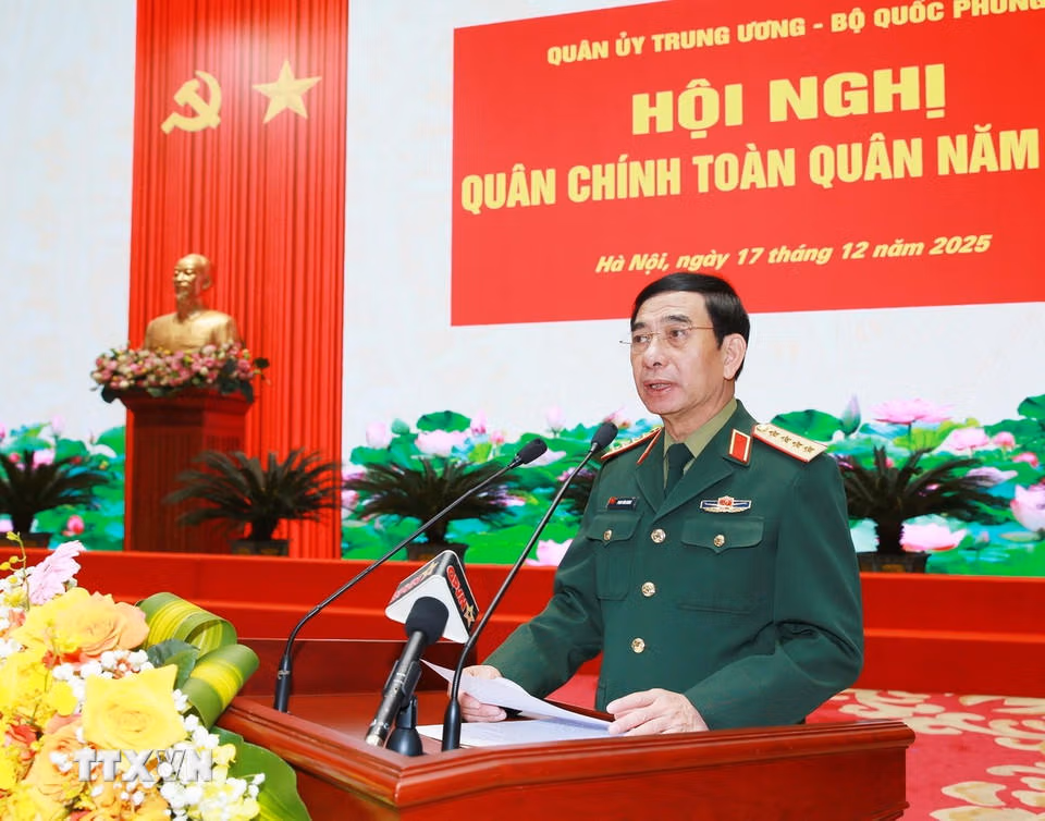 Chủ tịch nước dự Hội nghị Quân chính toàn quân năm 2025 Thứ Tư 17/12/2025 09:43 (GMT+7) Sáng 17/12/2025, tại Hà Nội, Chủ tịch nước Lương Cường dự Hội nghị Quân chính toàn quân năm 2025. Chủ tịch nước Lương Cường duyệt Đội danh dự Quân đội nhân dân Việt Nam. (Ảnh: Lâm Khánh/TTXVN)Chủ tịch nước Lương Cường với lãnh đạo Quân ủy Trung ương, Bộ Quốc phòng. (Ảnh: Lâm Khánh/TTXVN)Chủ tịch nước Lương Cường dự Hội nghị Quân chính toàn quân năm 2025. (Ảnh: Lâm Khánh/TTXVN)Chủ tịch nước Lương Cường dự hội nghị. (Ảnh: Lâm Khánh/TTXVN)Chủ tịch nước Lương Cường với các đại biểu dự hội nghị. (Ảnh: Trọng Đức/TTXVN)Chủ tịch nước Lương Cường với các đại biểu dự hội nghị. (Ảnh: Trọng Đức/TTXVN)Đại tướng Phan Văn Giang, Ủy viên Bộ Chính trị, Phó Bí thư Quân ủy Trung ương, Bộ trưởng Bộ Quốc phòng khai mạc hội nghị. (Ảnh: Trọng Đức/TTXVN)Đại tướng Nguyễn Tân Cương, Ủy viên Trung ương Đảng, Ủy viên Thường vụ Quân ủy Trung ương, Tổng Tham mưu trưởng, Thứ trưởng Bộ Quốc phòng trình bày báo cáo. (Ảnh: Trọng Đức/TTXVN)Chủ tịch nước Lương Cường với lãnh đạo Quân ủy Trung ương, Bộ Quốc phòng và đại biểu dự hội nghị. (Ảnh: Trọng Đức/TTXVN)Chủ tịch nước Lương Cường với lãnh đạo Quân ủy Trung ương, Bộ Quốc phòng và đại biểu dự hội nghị. (Ảnh: Trọng Đức/TTXVN)Chủ tịch nước Lương Cường và đại biểu tham quan trưng bày khí tài, thiết bị quân sự do Tổng cục Công nghiệp Quốc phòng sản xuất. (Ảnh: Lâm Khánh/TTXVN)Chủ tịch nước Lương Cường và đại biểu tham quan trưng bày khí tài, thiết bị quân sự do Tổng cục Công nghiệp Quốc phòng sản xuất. (Ảnh: Lâm Khánh/TTXVN)Chủ tịch nước Lương Cường và đại biểu tham quan trưng bày sách và tài liệu. (Ảnh: Lâm Khánh/TTXVN) TheoVietnam+ (VietnamPlus)