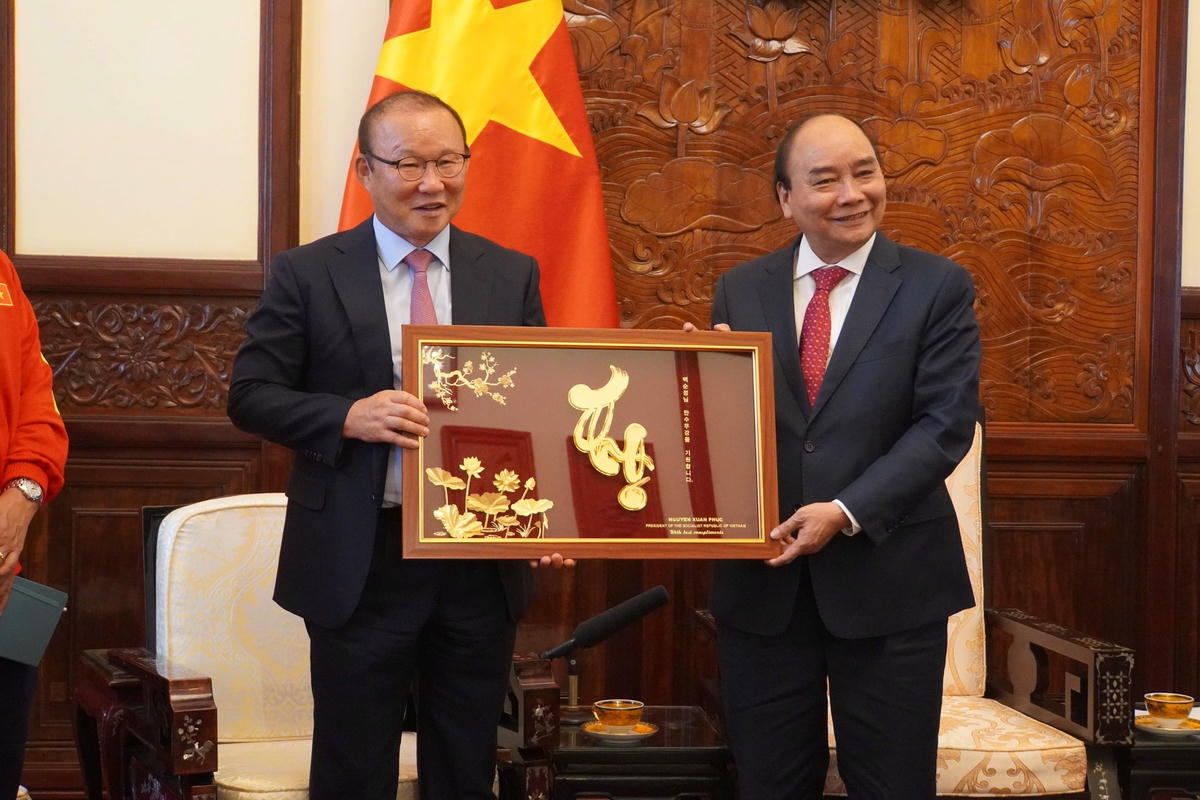 Tại buổi tiếp, 2 HLV trân trọng gửi lời cảm ơn Chủ tịch nước Nguyễn Xuân Phúc đã dành thời gian tiếp.