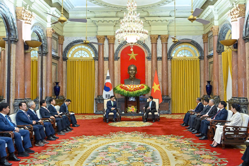 Nhiệt liệt chào mừng Chủ tịch Quốc hội Woo Won Shik cùng Đoàn đại biểu cấp cao Quốc hội Hàn Quốc thăm chính thức Việt Nam, Chủ tịch nước Lương Cường đánh giá chuyến thăm có ý nghĩa quan trọng, tiếp thêm động lực mới thúc đẩy quan hệ “Đối tác chiến lược toàn diện” giữa hai nước phát triển thực chất và hiệu quả hơn nữa trong thời gian tới; khẳng định hai nước thực sự đã trở thành đối tác quan trọng hàng đầu của nhau.