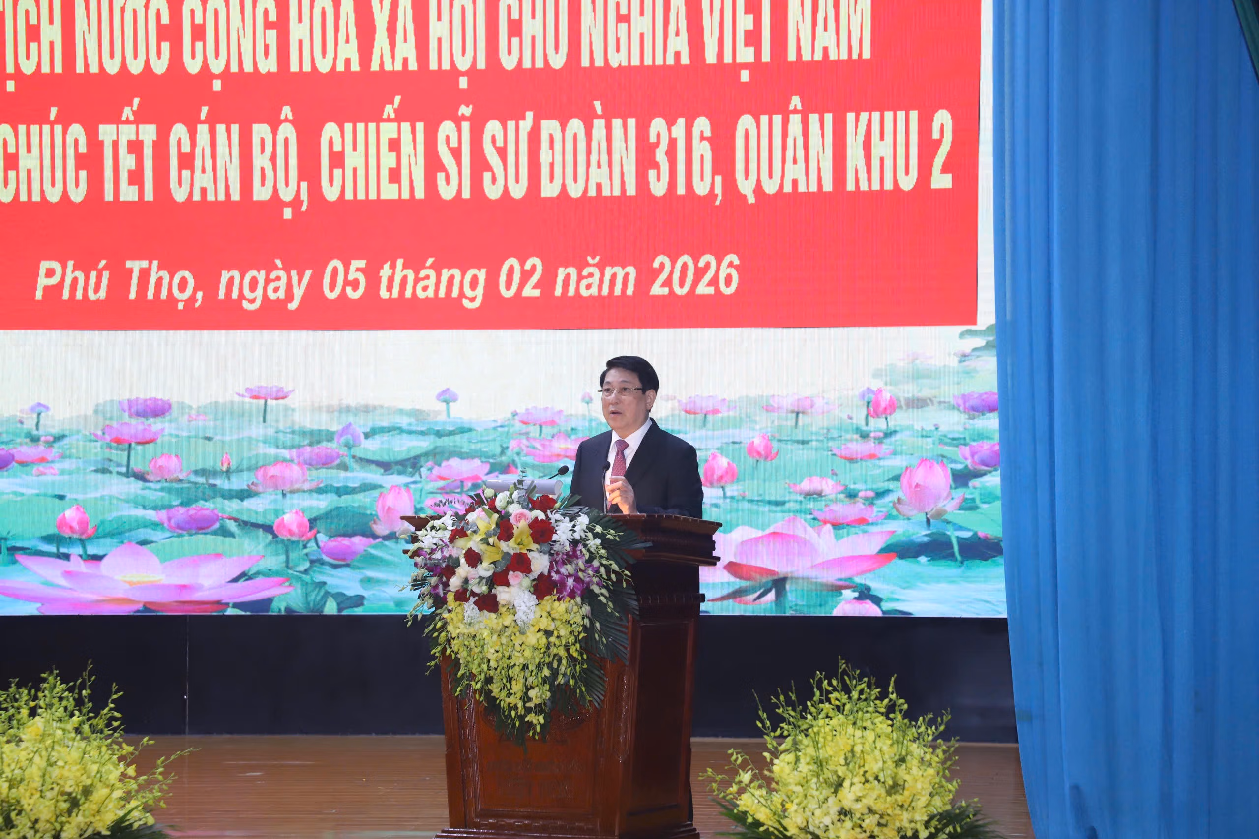 Hôm nay (5/2), Chủ tịch nước Lương Cường và Đoàn công tác Trung ương đã tới thăm, chúc Tết cán bộ, chiến sĩ Bộ Tư lệnh Quân khu 2, Sư đoàn 316, và Bộ Chỉ huy Quân sự tỉnh Phú Thọ