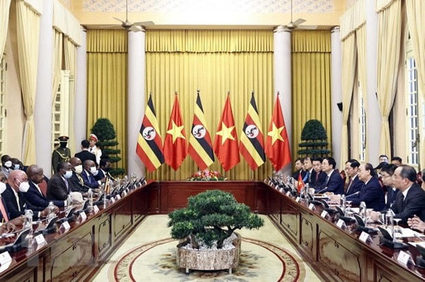 Chủ tịch nước Nguyễn Xuân Phúc và Tổng thống Yoweri Kaguta Museveni khẳng định quyết tâm tăng cường hợp tác kinh tế, nâng cao kim ngạch thương mại song phương tương xứng với quan hệ chính trị tốt đẹp, với quy mô thị trường gần 150 triệu dân của hai nền kinh tế.