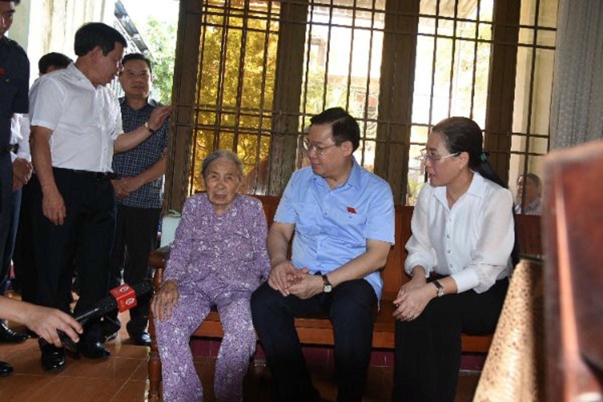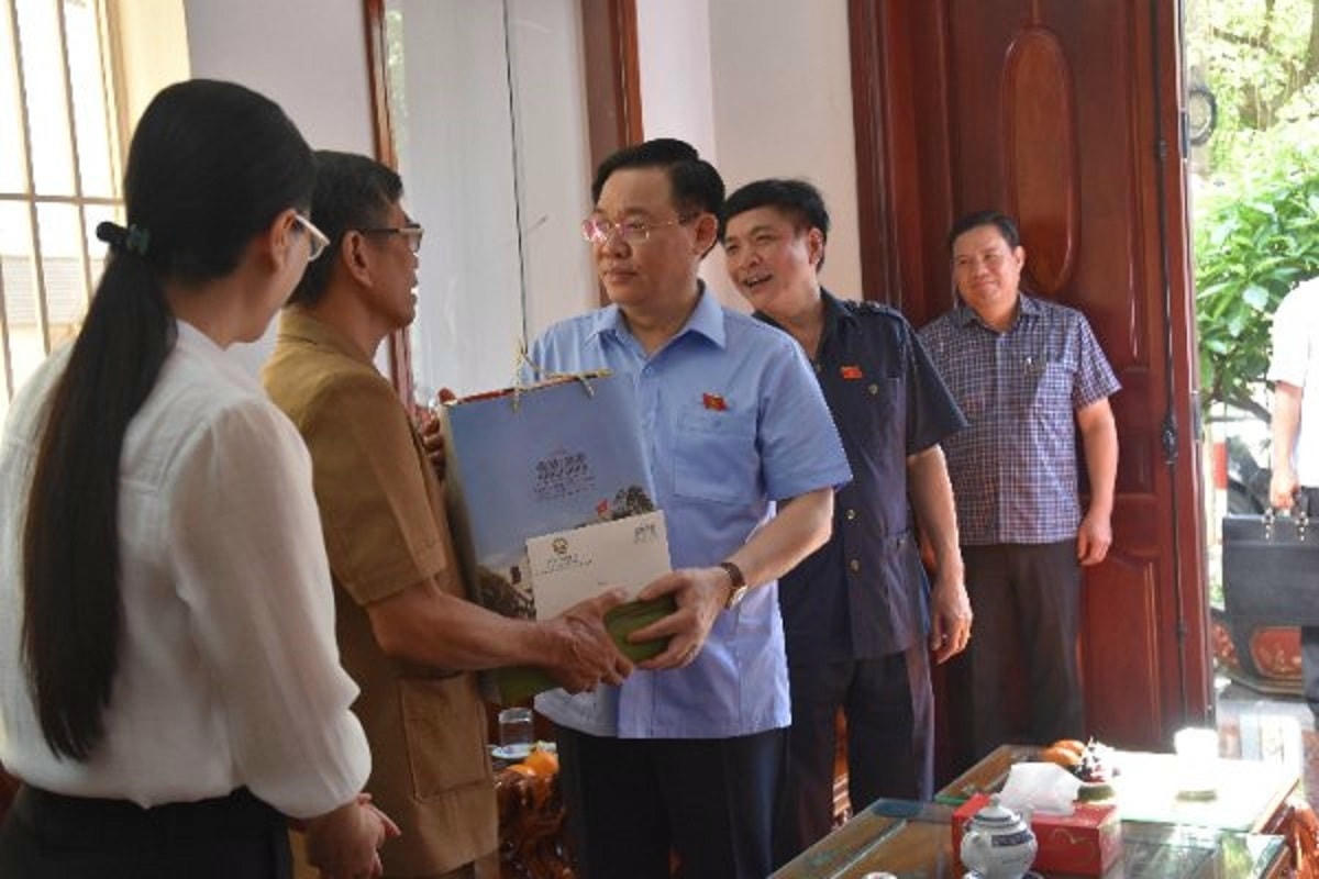 Cũng sáng nay, Chủ tịch Quốc hội Vương Đình Huệ và Đoàn công tác đã đến thăm Mẹ Việt Nam Anh hùng (VNAH) Nguyễn Thị Thư (93 tuổi) và ông Phan Thanh Nam (68 tuổi) là thương binh 1/4, cả 2 cùng trú TP Quảng Ngãi.