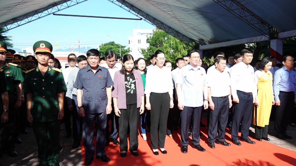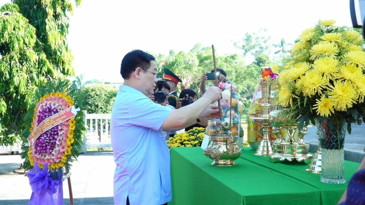 Khắc ghi những cống hiến, hy sinh to lớn của các anh hùng liệt sĩ, Chủ tịch Quốc hội Vương Đình Huệ cùng đoàn công tác đã dâng hương, dâng hoa, nguyện hứa tiếp tục nỗ lực phấn đấu, đoàn kết một lòng xây dựng đất nước ngày càng phát triển giàu mạnh, văn minh.