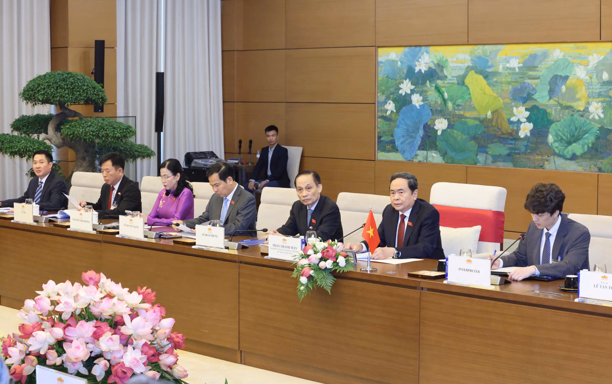 Chủ tịch Quốc hội Trần Thanh Mẫn nhiệt liệt chào mừng Tổng thống Lee Jae Myung và Phu nhân cùng đoàn đại biểu cấp cao Chính phủ Hàn Quốc thăm cấp Nhà nước tới Việt Nam; nhấn mạnh chuyến thăm diễn ra ngay sau khi Quốc hội khóa XVI của Việt Nam kiện toàn bộ máy lãnh đạo, thể hiện sự coi trọng đặc biệt của Tổng thống và Chính phủ Hàn Quốc đối với quan hệ Đối tác chiến lược toàn diện Việt Nam - Hàn Quốc.