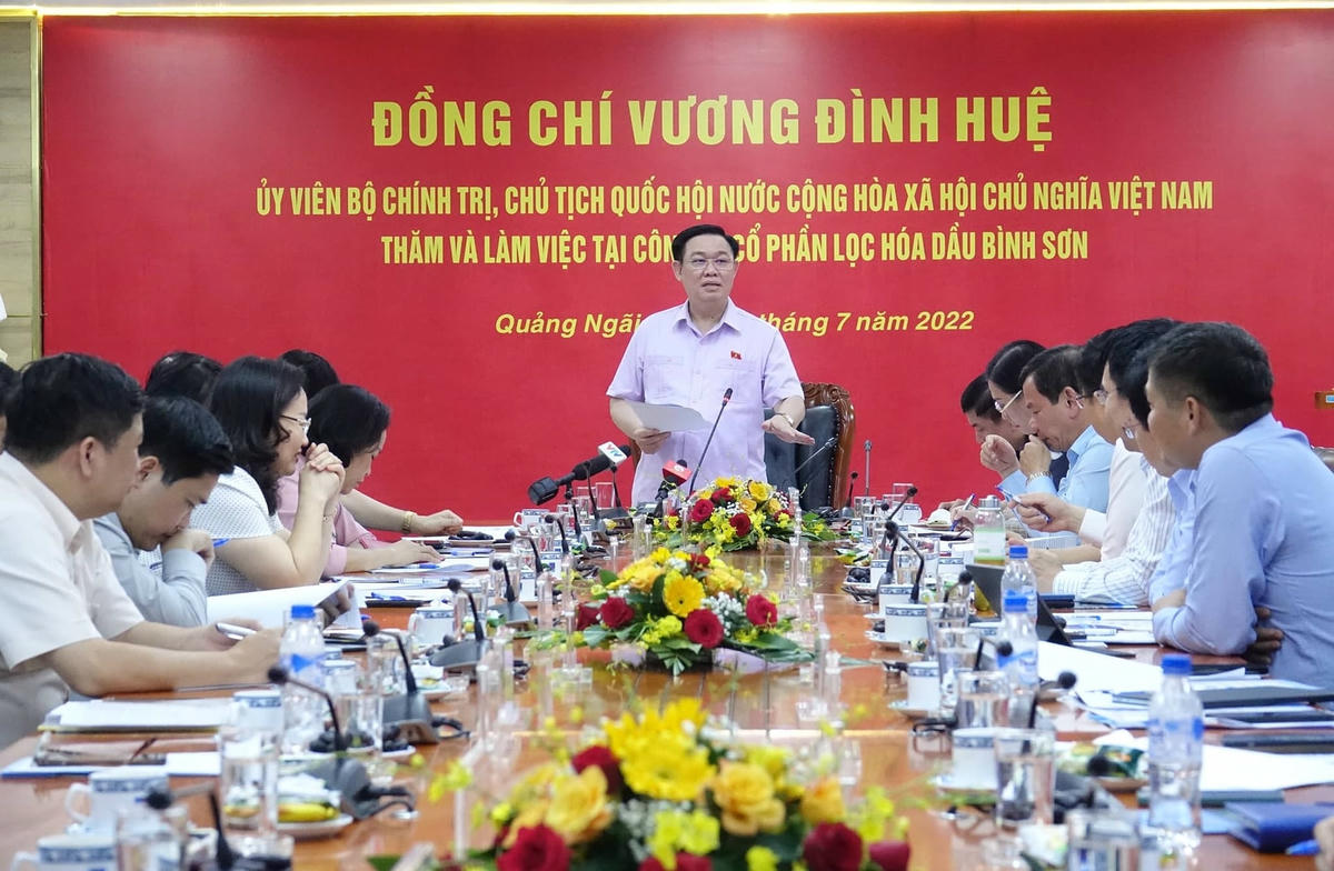 Nhân chuyến công tác tại tỉnh Quảng Ngãi, chiều 25/7, Chủ tịch Quốc hội Vương Đình Huệ đã tới thăm và làm việc với Công ty Cổ phần Lọc hóa dầu Bình Sơn, đóng ở huyện Bình Sơn, tỉnh Quảng Ngãi.